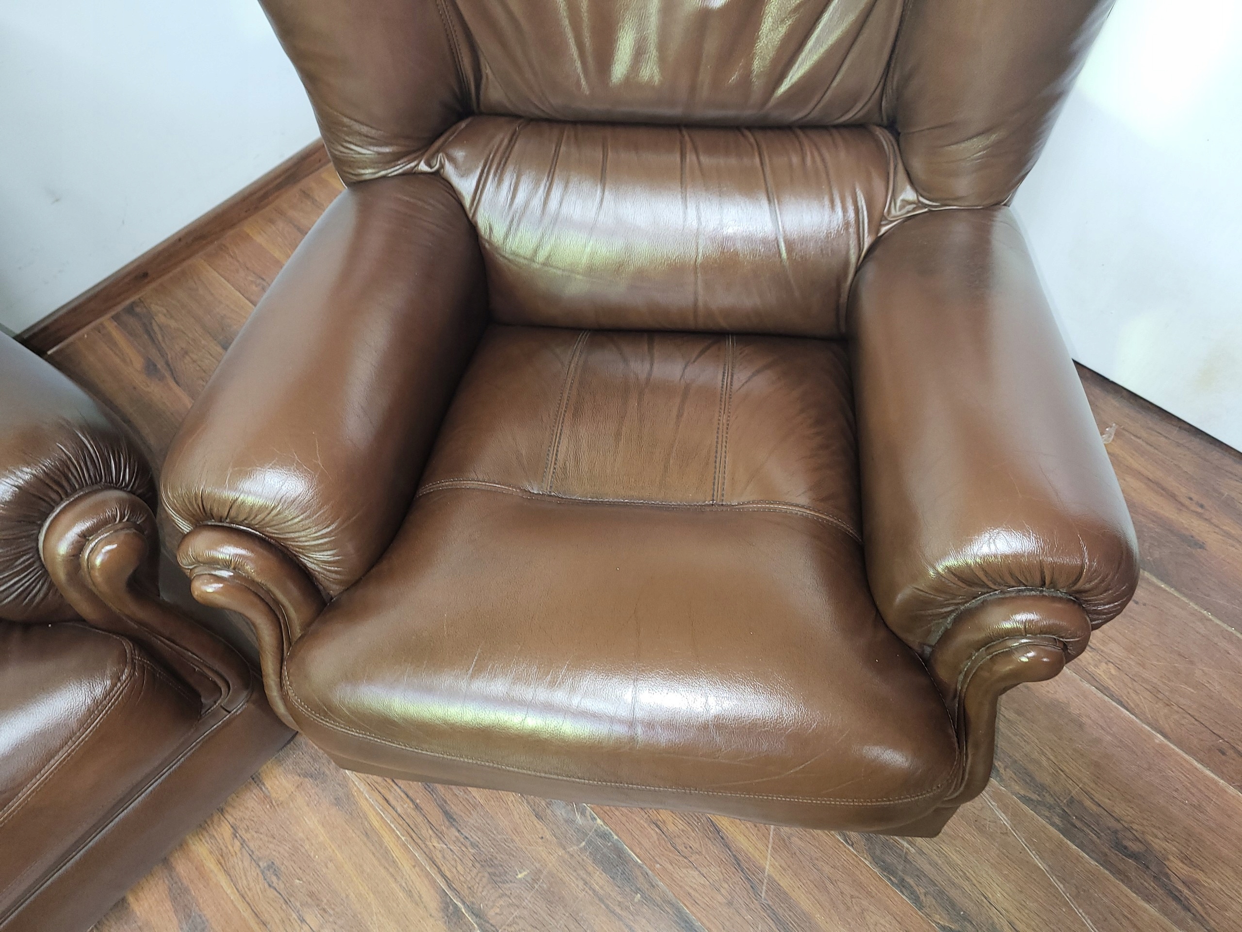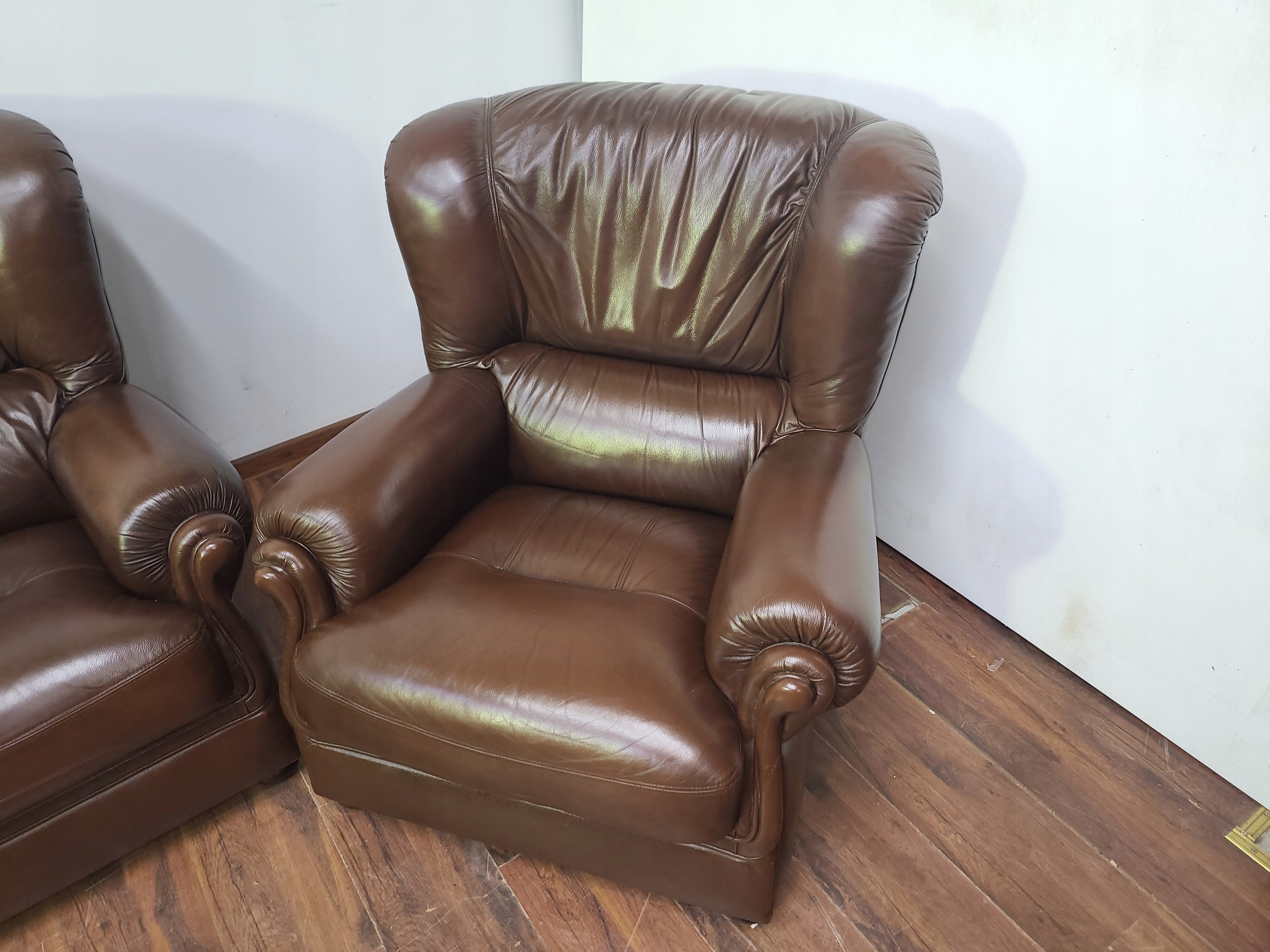 Гарний, стильний комплект. Складається з 3-х місного дивана та двох крісел. Країна походження: Франція. Комплект в ідеальному стані. Матеріал натуральна шкіра. Комплект характеризується неймовірною елегантністю.
