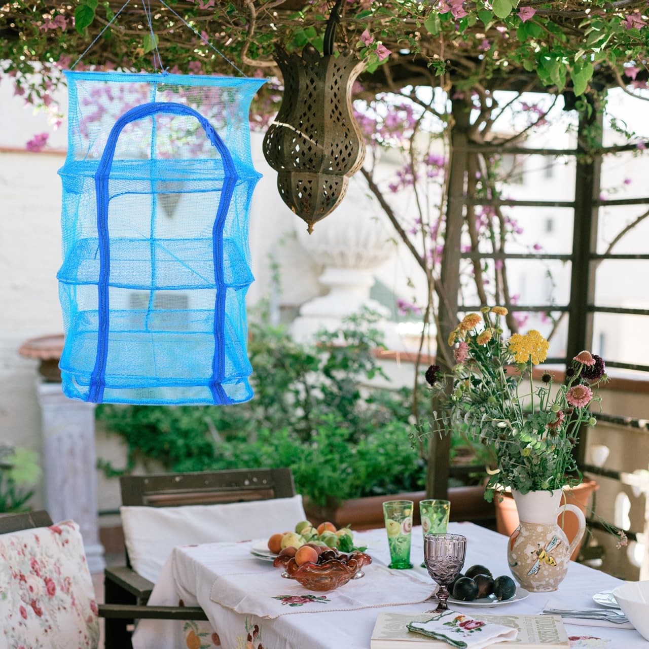 Висить сітчаста сушарка, що складає три шари для сушіння трави грибів