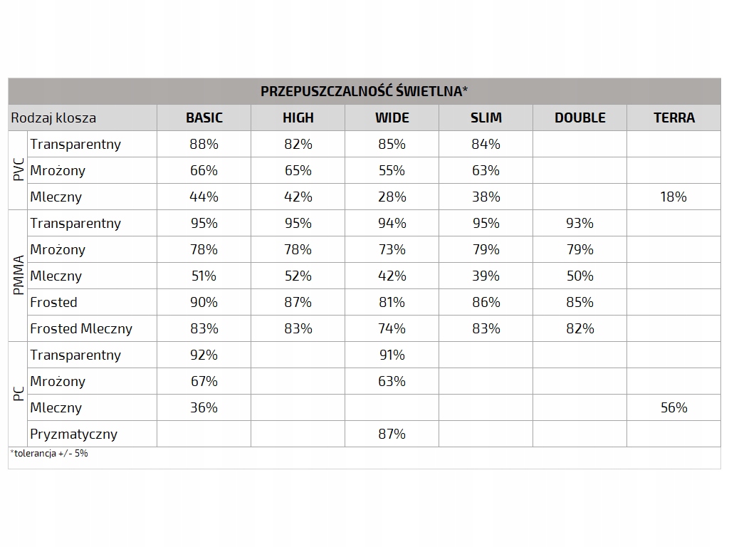 Типи: МОЛОЧНИЙ, МАТОВИЙ, ПРОЗОРИЙ
