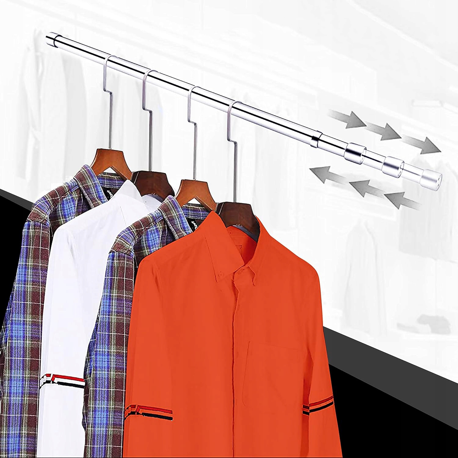 💎💎【 довговічна і довговічна】 Наша висувна палиця одягу виготовлена з високоякісної нержавіючої сталі, стійкої до корозії та довговічності. Завдяки цій рейці ви можете зберегти свій гардероб для чистоти та замовлення. Поверніть, щоб встановити потрібний розмір, а потім повернути обертання, щоб заблокувати. Він може нести до 30 кг. Наш штока регулюється обертанням.