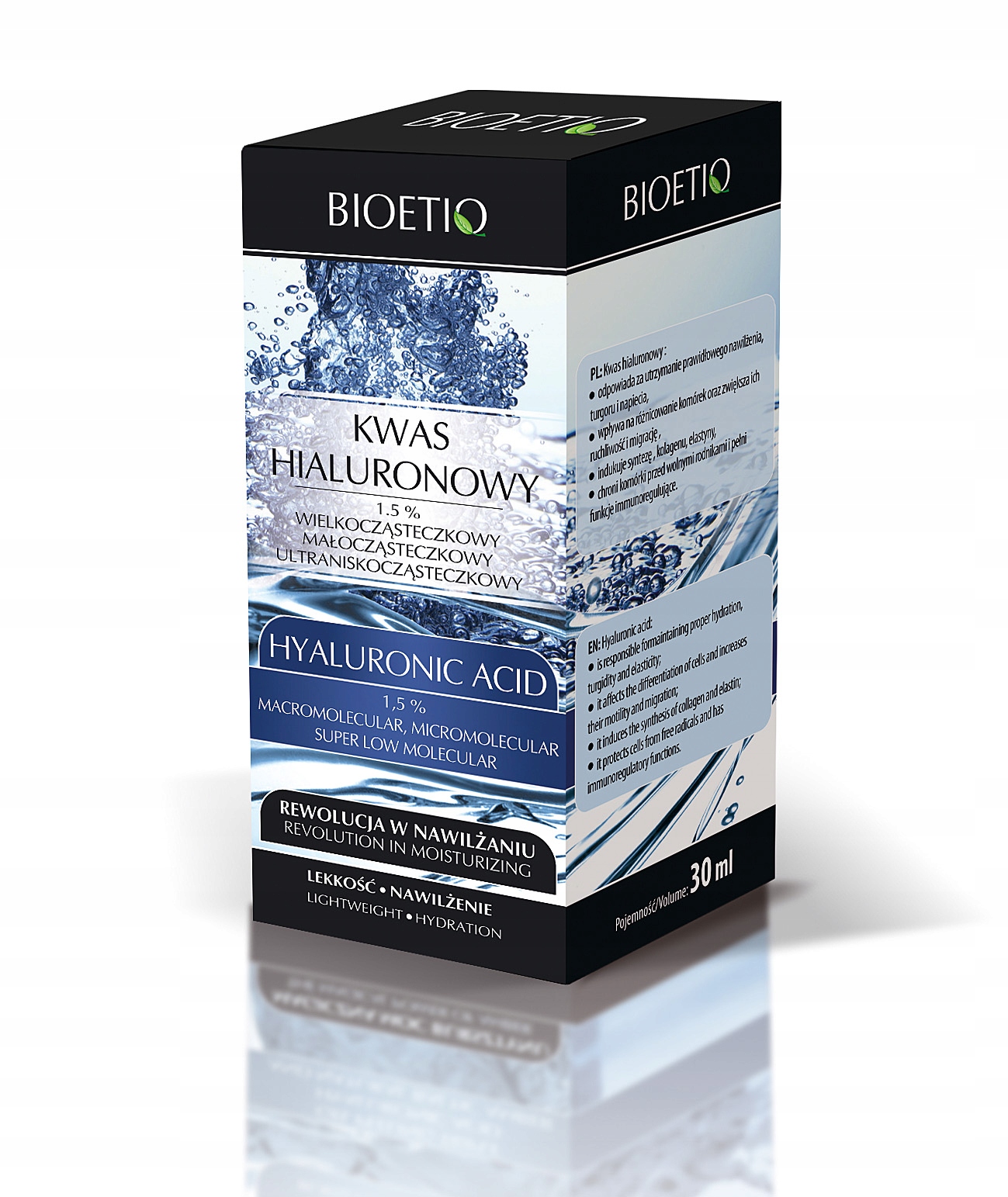 Гіалуронова кислота — це речовина, яка природно зустрічається в організмі у формі гіалуронату натрію. Більше половини загальної кількості гіалуронової кислоти знаходиться в шкірі і міжклітинному просторі, безпосередньо відповідальних за належне зволоження, еластичність і гладкість шкіри. З віком його кількість у шарі дерми зменшується, що призводить до втрати пружності та еластичності шкіри. Таким чином, пряме нанесення гіалуронату натрію на шкіру заповнює її недоліки та має зволожуючий, розгладжуючий ефект і дію проти зморшок, а також стимулює клітини до інтенсивної реконструкції.