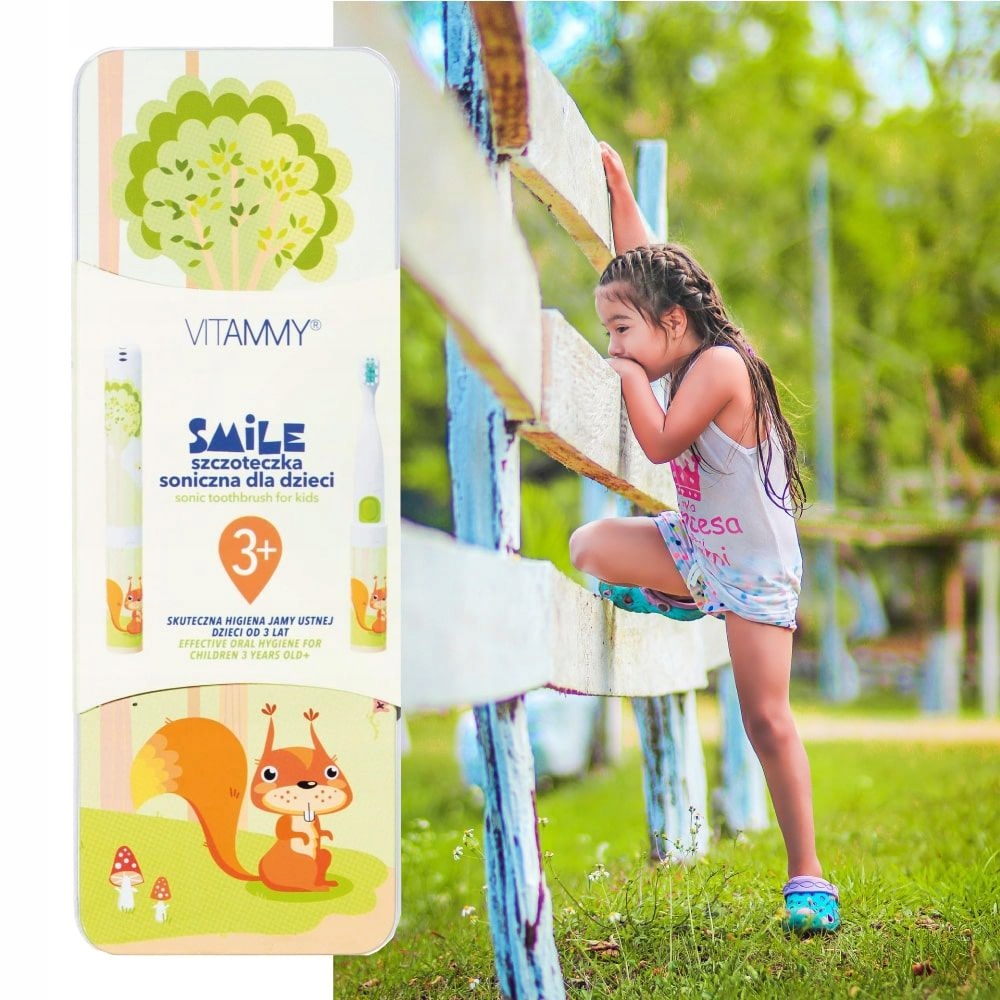 Це ідеальна зубна щітка для дітей, чудові кольори та казкові малюнки спонукатимуть їх до щоденної гігієни. Завдяки звуковій технології зубна щітка подбає про здорову посмішку кожної дитини. VITAMMY SMILE — яскрава та весела ідея, завдяки якій зубна щітка стане не лише предметом щоденного догляду за ротовою порожниною, а й чудовим гаджетом, який так люблять діти. Це також ідеальне рішення для дорослих, які віддають перевагу меншим чистячим голівкам, або для тих, чия дитина постійно дрімає.