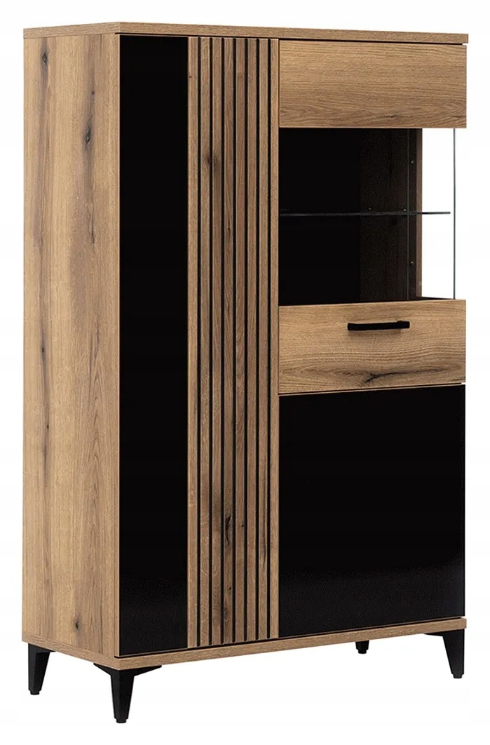 Поєднання кольорів дуба evoke і чорного робить ці меблі ідеальними для сучасних інтер'єрів. Колекція ARIS відрізняється простими чорними ручками і ніжками цікавої форми, що надає їй легкості та виразності. Крім унікального зовнішнього вигляду, він також характеризується кількістю форм, завдяки яким він доповнить облаштування більшості кімнат, наприклад, вітальні або спальні.