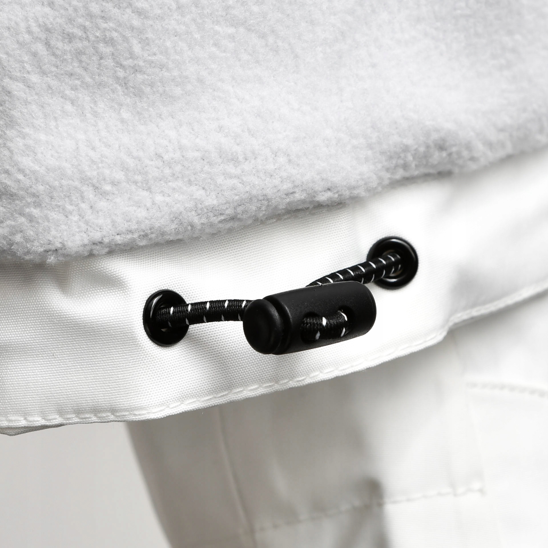 Капюшон має шнурки з обмежувачами з обох боків, щоб щільно прилягати до обличчя під час сильного вітру. За потреби ви можете згорнути його та заправити в комір.