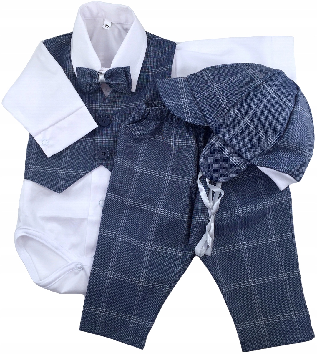 - Колір: білий + темно-синій краватка-метелик із сірою клітинкою
