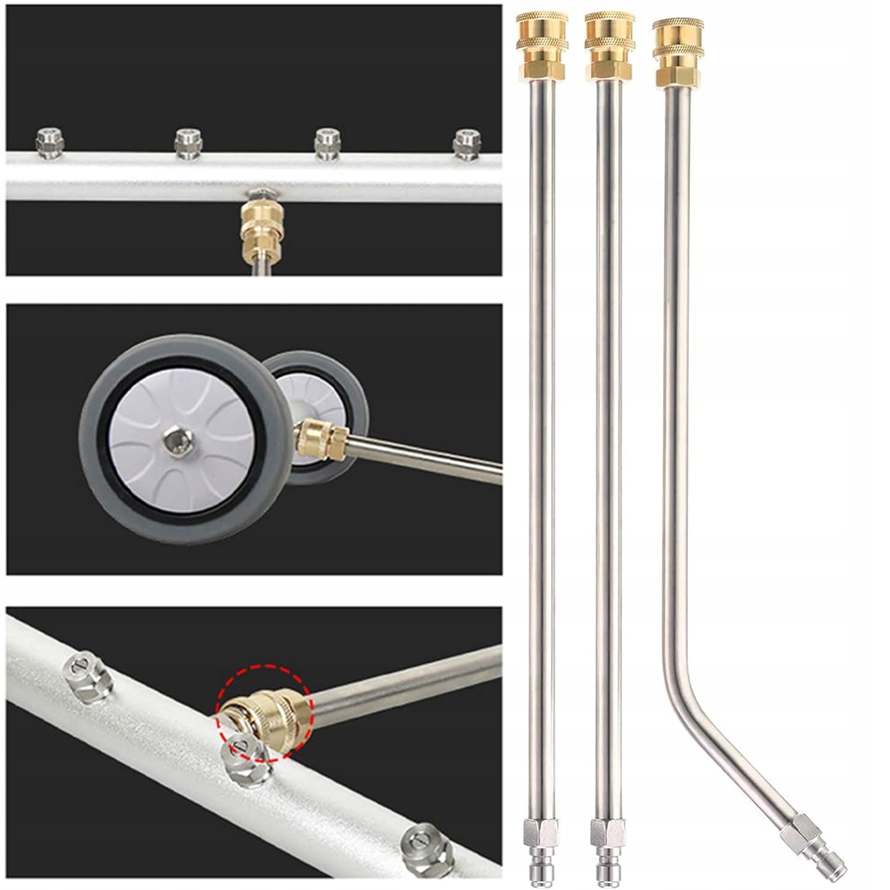- 1 x 16-дюймова щітка для мийки високого тиску, 2 x 16-дюймові подовжувачі для мийної машини під тиском, 1 x 15-дюймовий стовп зігнутий 90°, 5 насадок. Усі частини мають швидкі з’єднувачі 6,35 мм.
