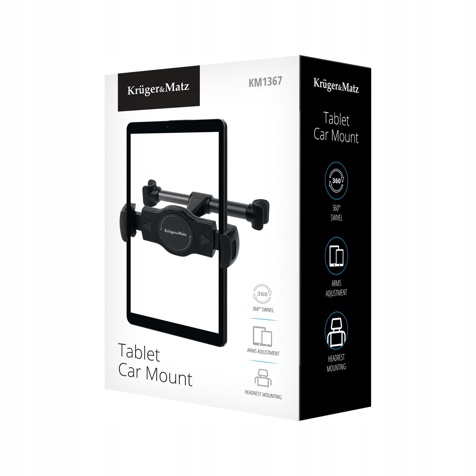 Kruger & Matz - це сучасний власник автомобіля розширення. Він виготовлений з високої якості поліуретану, алюмінію та полікарбонату . Ручка складається з двох частин, одна з них - це розширення стебла , а інша - сама ручка. Ядро розширення адаптоване для використання з підголівками з шириною 125-165 мм . Сама ручка адаптована для пристроїв з шириною 110-190 мм.