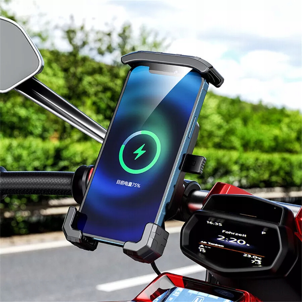 Власник мотоциклів для телефону USB Charger 12/24V QI15W + PD20W