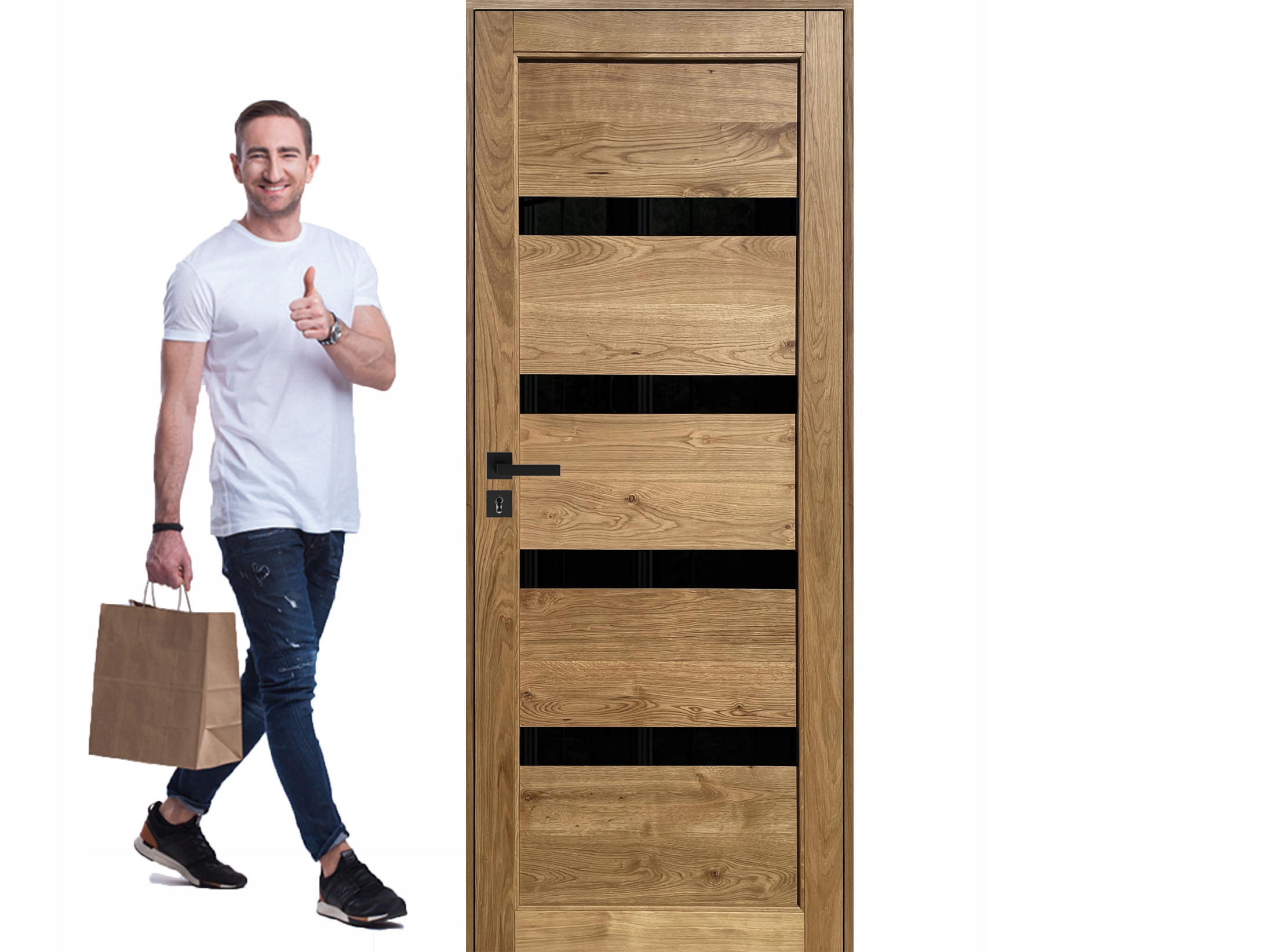 дубовий дверний лист virgeno 2c з чорним склом + регульованою рамкою за потребою