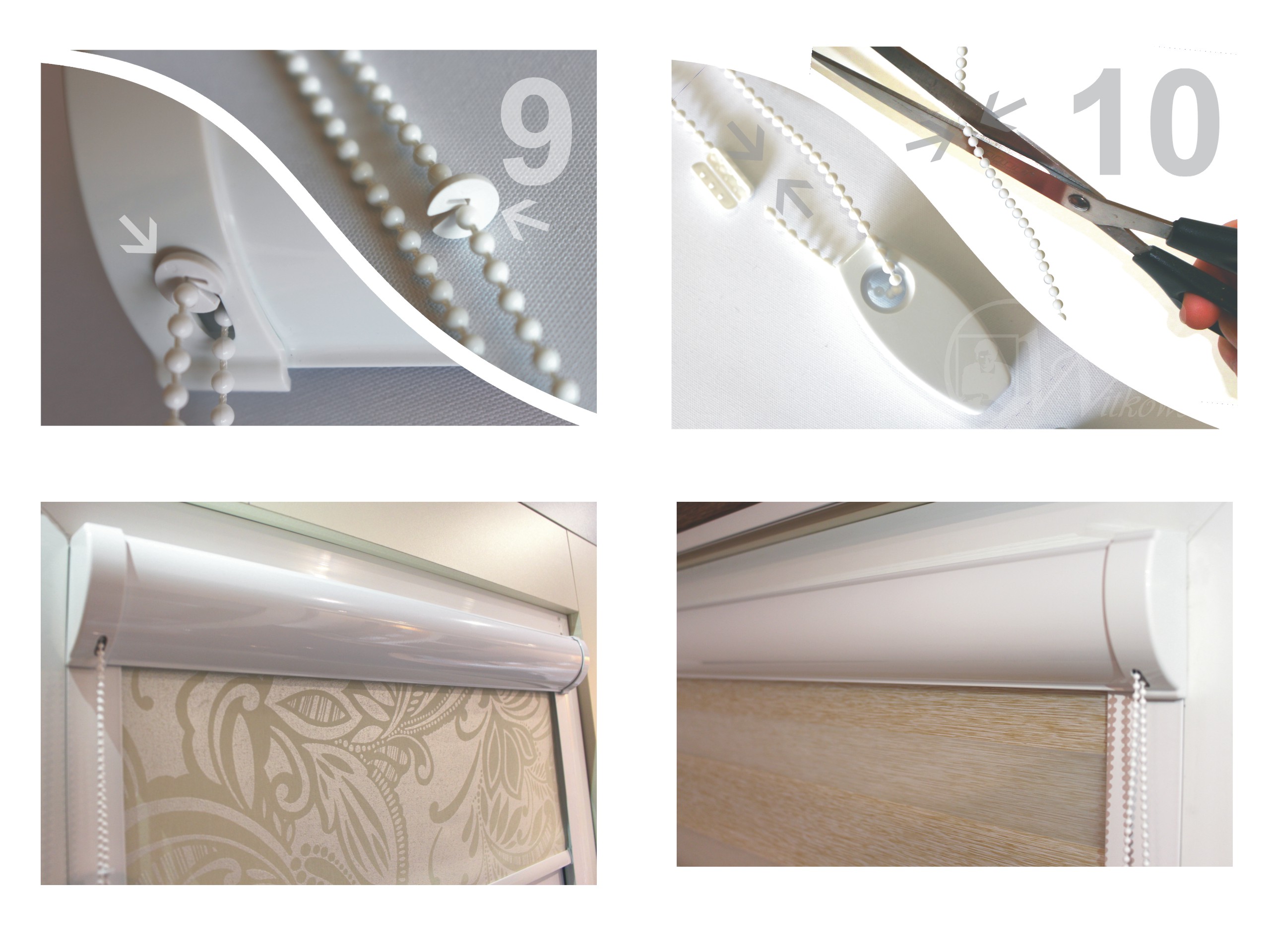 - Рулонні штори мають самогальмівний ланцюговий механізм, який дозволяє зупиняти рулонні штори на будь-якій висоті.