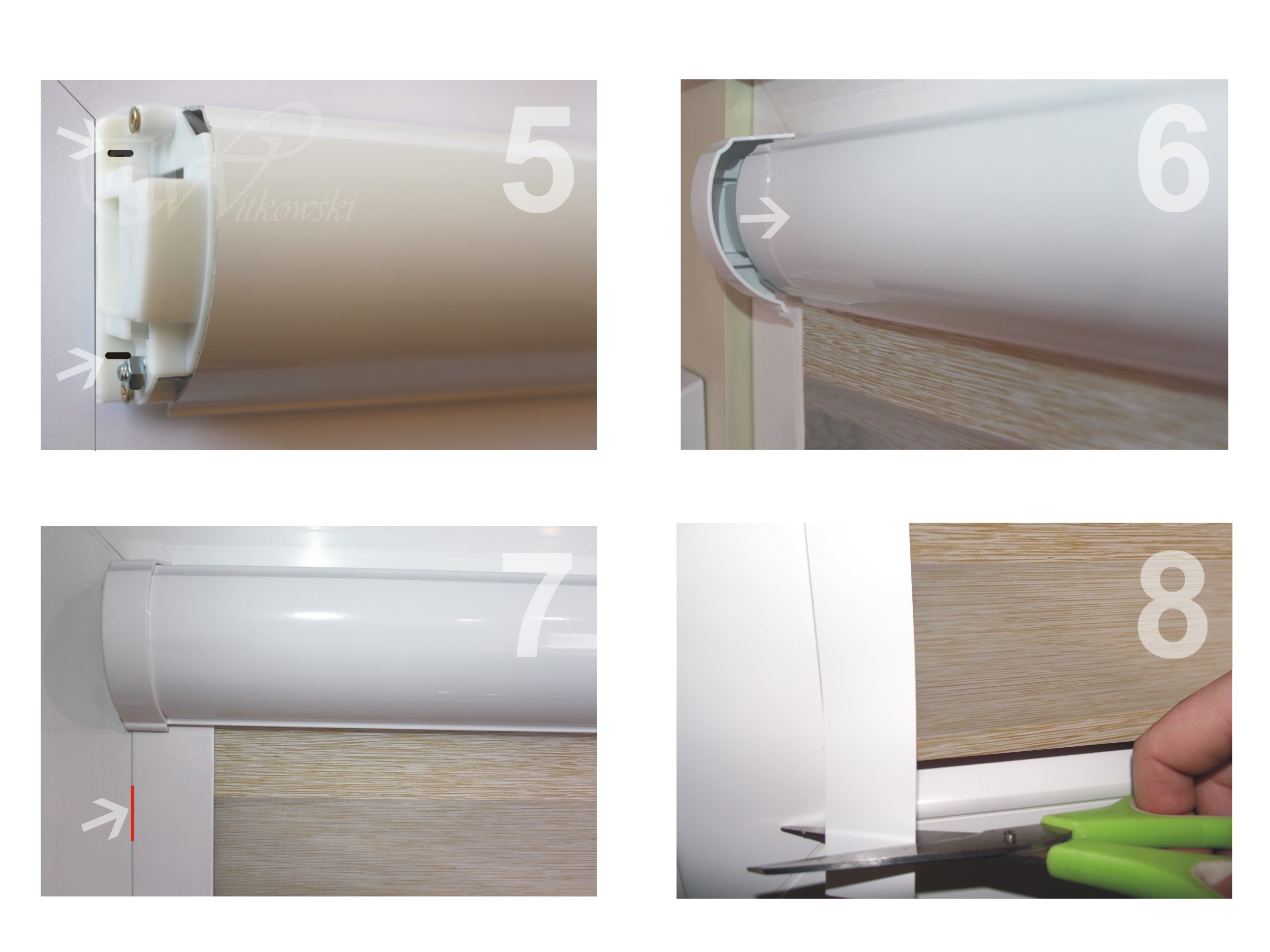 - Ви можете відірвати стрічку, яка утримує матеріал. Для полегшення складання не розгортайте рулон тканини. - Рулонні штори можна попередньо приклеїти самоклеючими стрічками, розміщеними з боків корпусу, що полегшить монтаж за допомогою гвинтів.