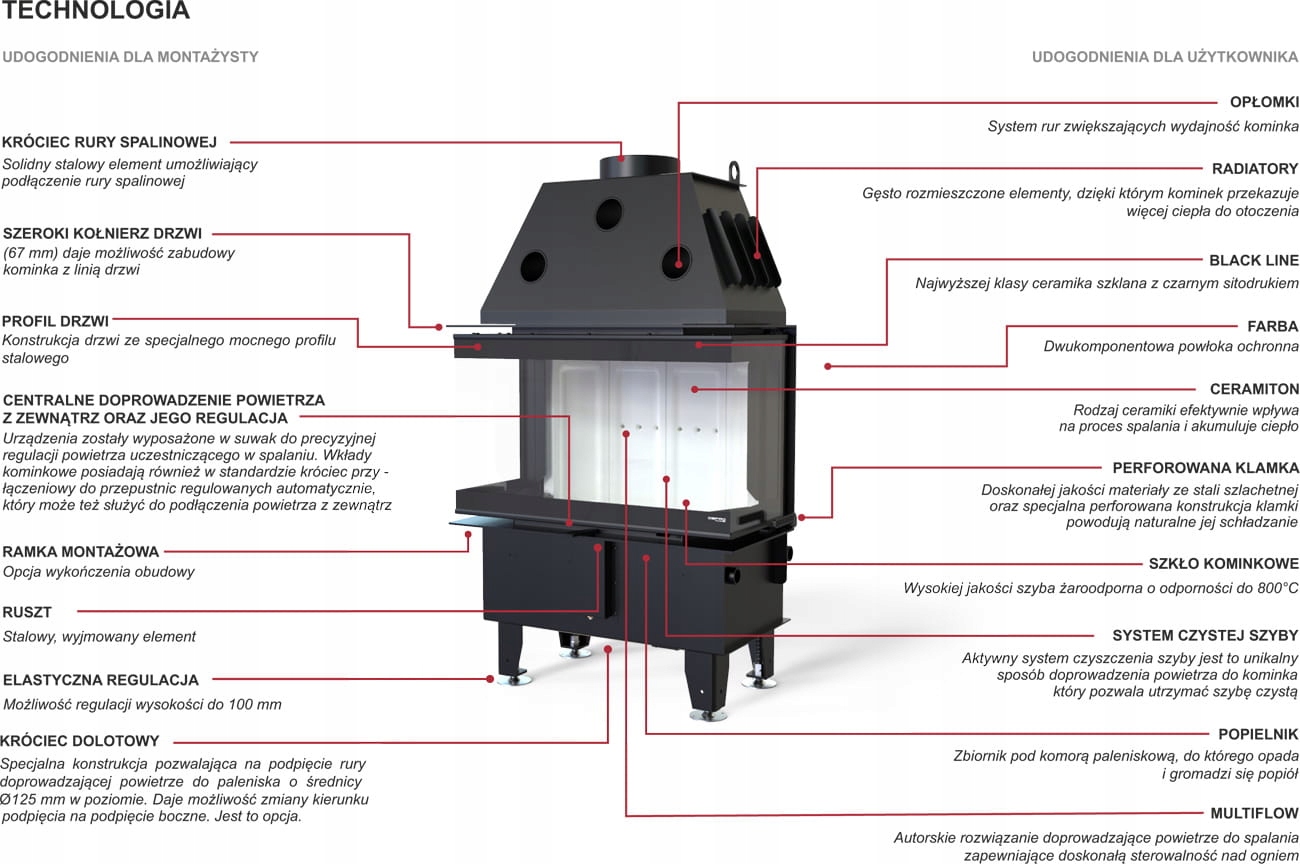 Defro Home Intra XSM C Ver. Компактний 1 - це готовий збірний комплект, що складається з надійного домашнього картриджа Defro Intra XSM C та модульних будівель, виготовлених з високоякісної сталі. Три -створений камін має інноваційну систему закриття дверей, яка забезпечує адекватний комфорт: відкриття та закриття та гнучкість печі. Оригінальна конструкція вогнища, оснащена системою з двох дефлекторів, що розширюють вихлопний маршрут. Він також використовує точне рішення подачі повітря для спалювання - багатофлови. Камін оснащений високоякісною керамічною, що спікається екранним друком із опором до 750 ° C - чорної лінії. Верхова обшивка виготовлена з довговічного церамітону у двох відтінках: світла і чорна. Якість використовуваних матеріалів та проектування пристрою дозволяють відповідати обмежувальним європейським екологічним стандартам. Переваги