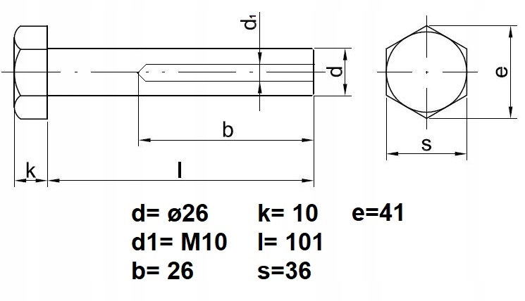 ВНУТРІШНЯ РІЗЬБА ГВИНТА З ПІДСТАВКОЮ. M10 26x101MM