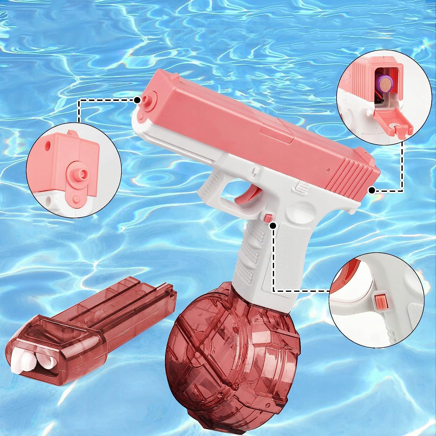 🌞 Нескінченна забава Потужний пістолет для розпилення - це ідеальний вибір для занять на свіжому повітрі, пляжах, піску, басейнів, подій, забезпечить вам нескінченну забаву.