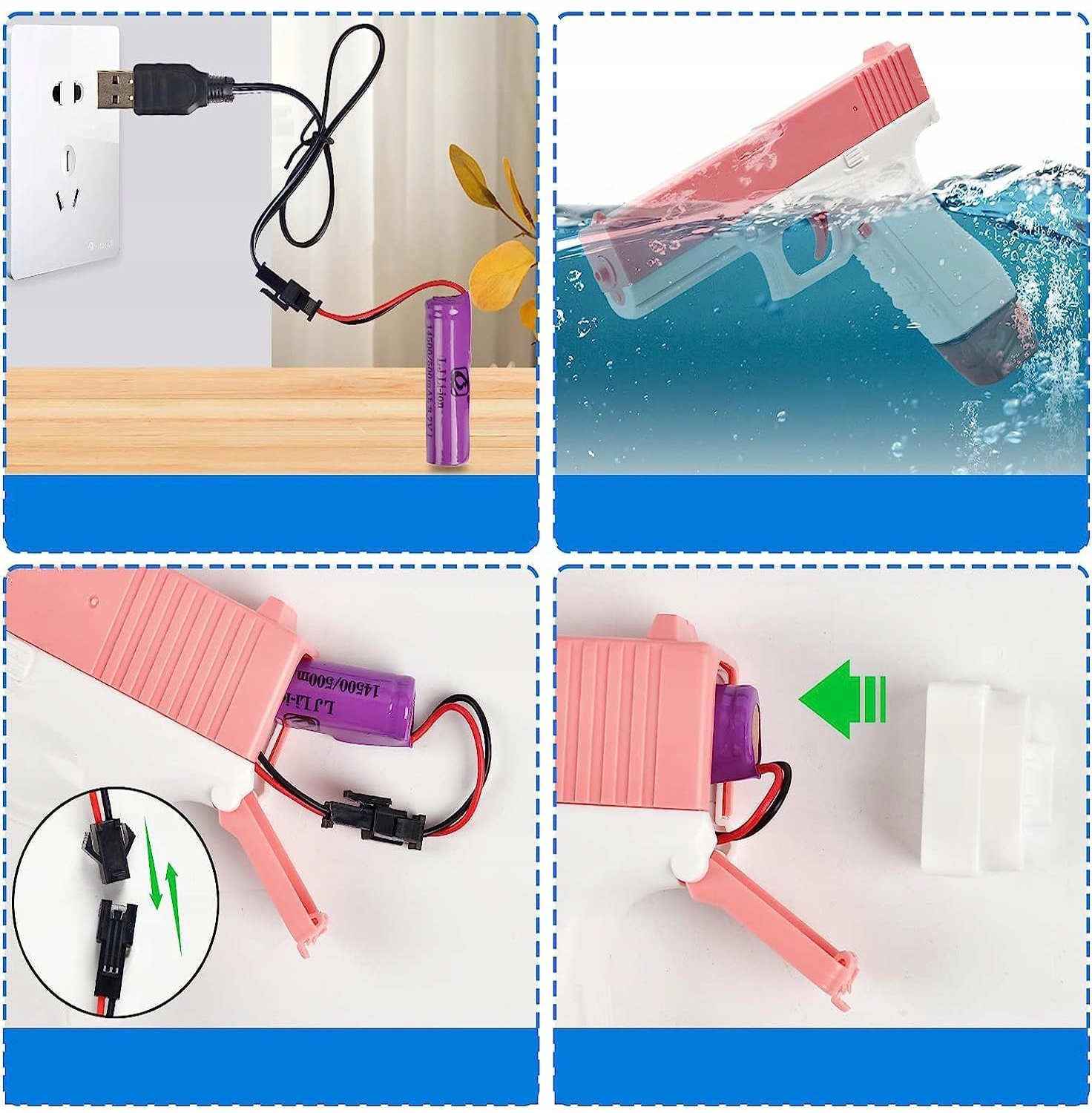 ⚠ Будь ласка, не занурюйте пістолет електричної води у воду, щоб уникнути пошкодження електронних компонентів! Час зарядки> 2 години