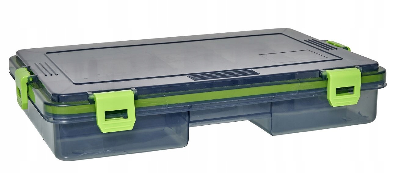 Ящики для наживки з модульними відділеннями та водонепроникним ущільнювачем для захисту від дощу. Ущільнювач також дозволяє коробкам плавати, що може бути дуже корисним під час риболовлі з човна чи байдарки. Кришка утримується чотирма затискачами, щоб уникнути випадкового відкривання коробки, і є багато варіантів конфігурації для різноманітного вмісту. Димчастий сірий колір обмежує шкідливий вплив УФ-променів на наживки, особливо на м’які приманки.