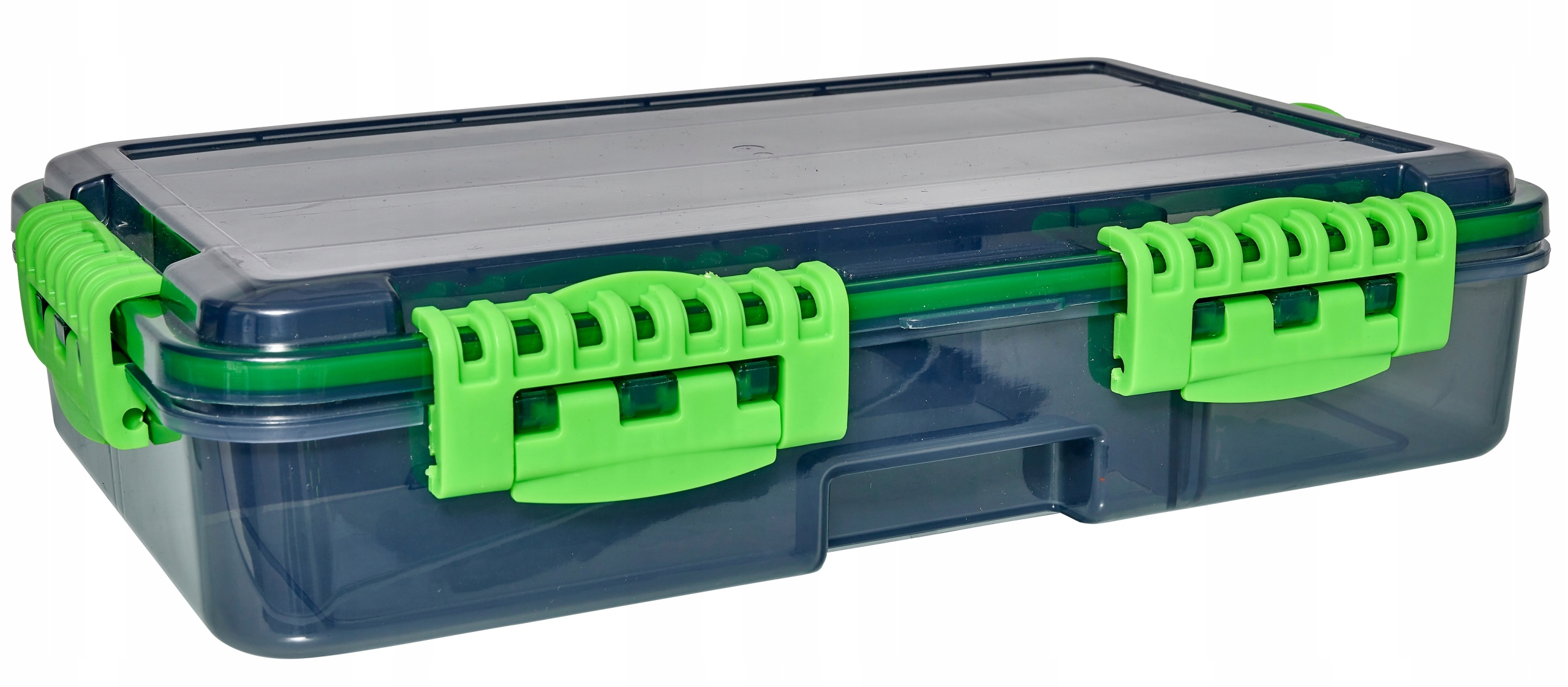 Глибока коробка з регульованими роздільниками, які можна конфігурувати залежно від набору приманок, які ви хочете упакувати. Закривається чотирма надійними затискачами та призначена для розміщення якомога більшої кількості вмісту. Ідеально підходить для великих приманок і додаткового обладнання, яке ви носите з собою на всякий випадок. Водонепроникне ущільнення гарантує, що коробка плаватиме, якщо вона впаде у воду. Ідеально підходить для човна та для прогулянок!