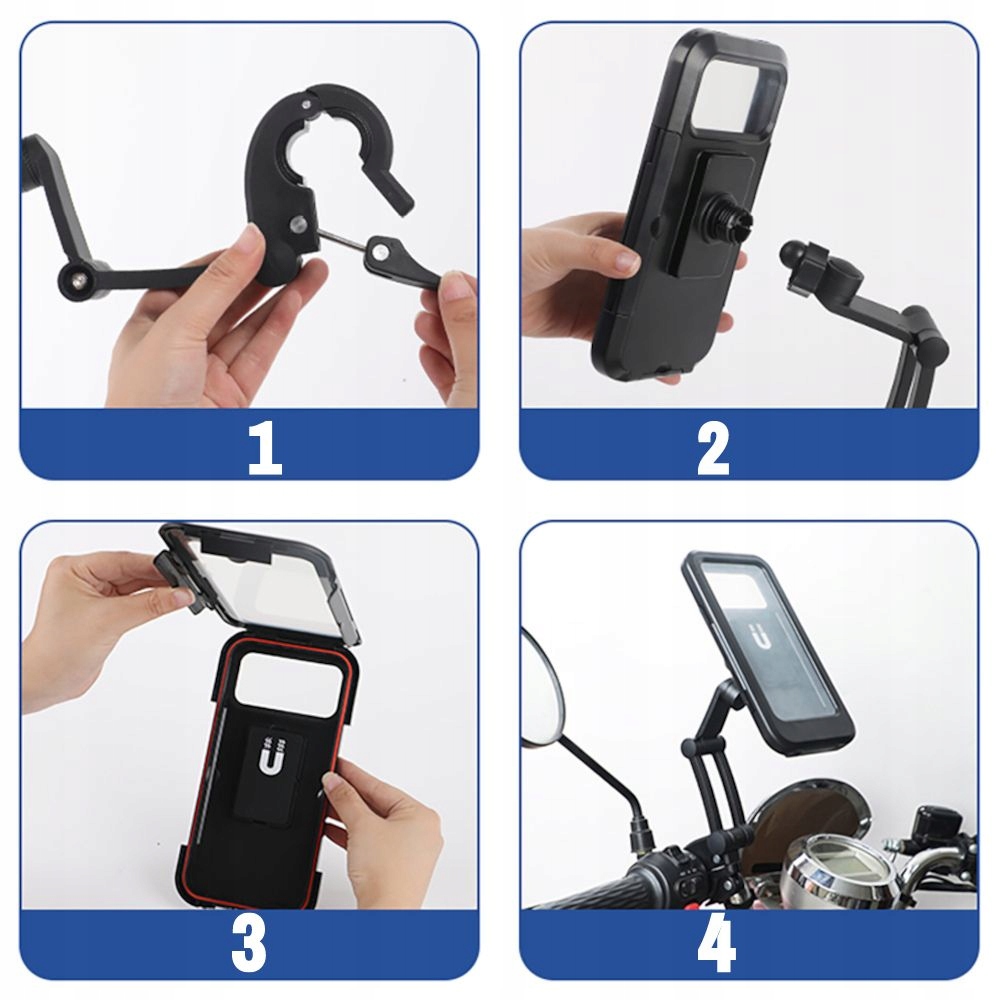 4 Діапазон 360 ° дозволяє регулювати кут перегляду смартфонів відповідно до вашого власного Налаштування Ручка має три точки регулювання руки , що дозволяє регулювати відповідну висоту, а кут відхилення Швидке фіксація важельного затискача забезпечує Надійна і швидка збірка або розбирання ручки Використовувані гвинти та кріплення клавіші AMPH дозволяють точно регулювати ручку, що гарантує стабільне утримання Смартфон під час руху