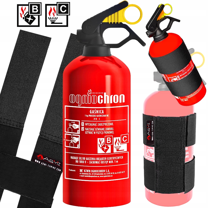 ✅ Пожежна пожежна пожежна допомога 1 кг + комплект першої посібника DIN 13164 + Власник липучки Кріплення пожежника