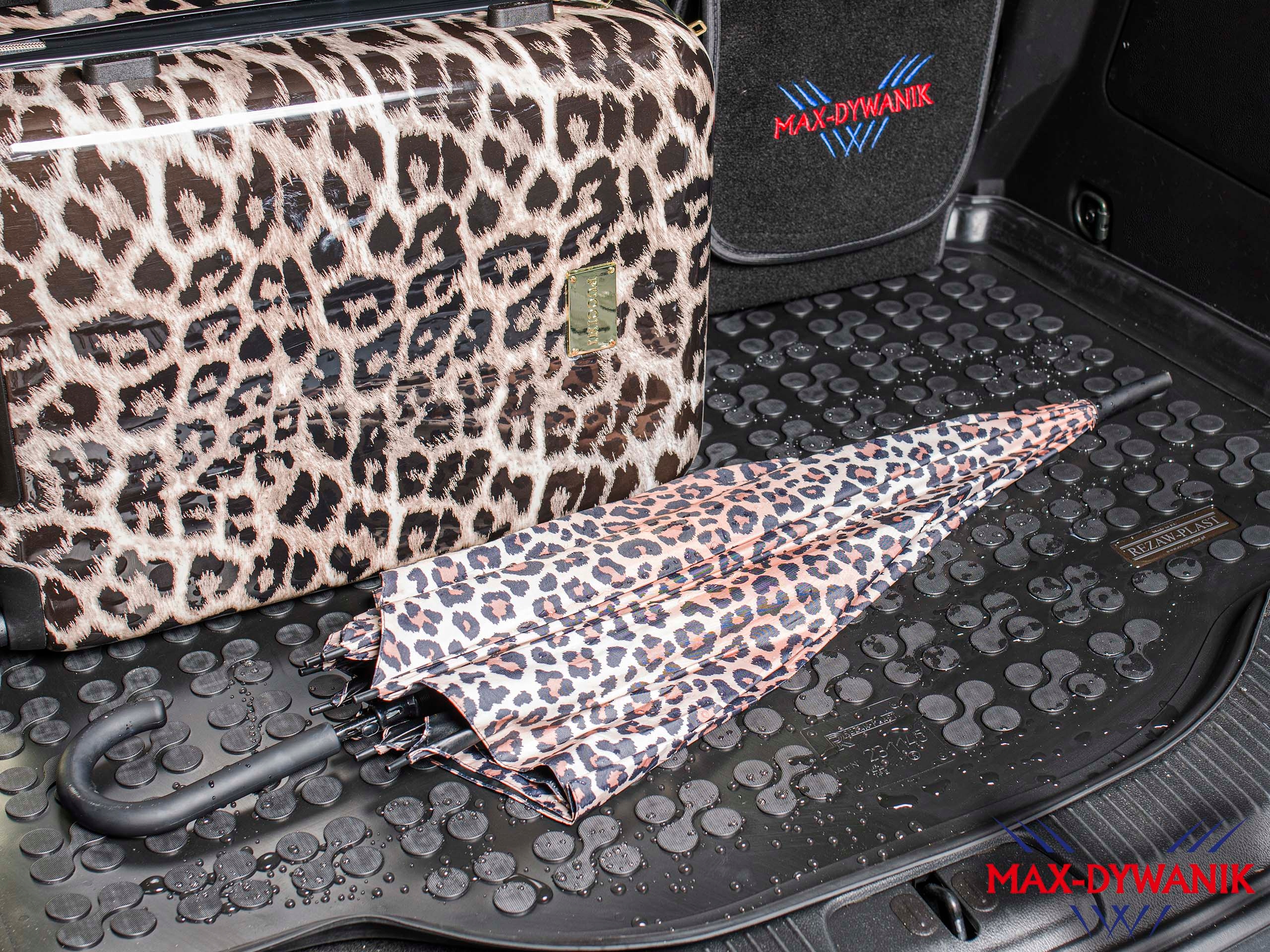 Пропонований вкладиш багажника (килимок) був точно розроблений відповідно до форми багажника, враховуючи не лише марку/модель чи версію кузова, але й тип обладнання, завдяки килимок ідеально поміщається в нішу багажного відділення. Килимок виготовлений з високоякісних термоеластомерів (синтетичних каучуків), стійких до фізичних і хімічних факторів (бензин, мастила, розчинники). Високий захисний комір навколо килима ефективно утримує воду та бруд, захищаючи оригінальний килим багажника від бруду, а завдяки своїй гнучкості кромка ідеально прилягає до країв багажника, не залишаючи порожніх місць. Килимок розроблено таким чином, що дозволяє використовувати тримачі для ременів для фіксації вантажу, розташованого на підлозі та стінках багажника. Характерні колеса з функцією протиковзання та характерний дизайн надають салону багажника унікальний вигляд та елегантність.