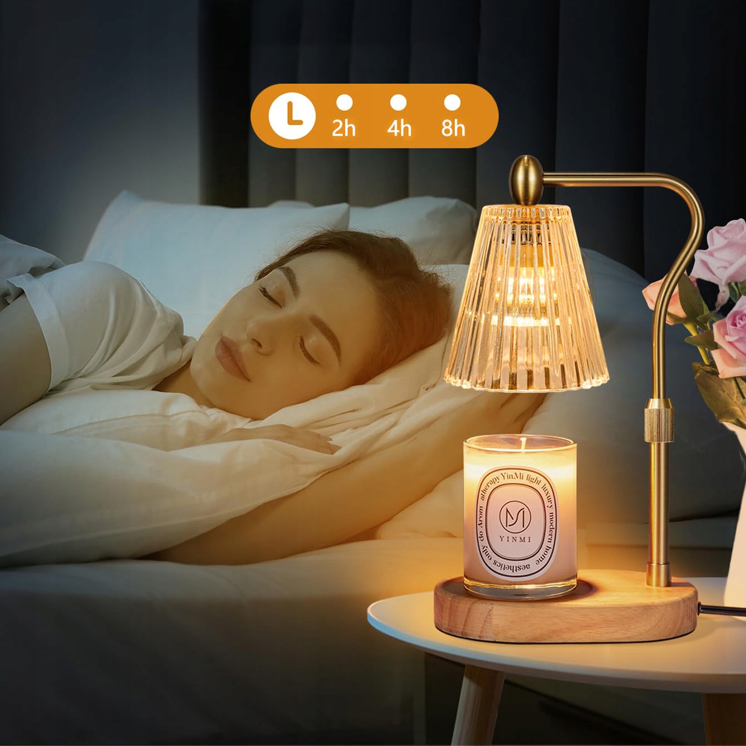 нагрівач для свічок з плавленням з таймером, регульована яскравість, дерев’яна основа для спальні, ванної кімнати, вітальня