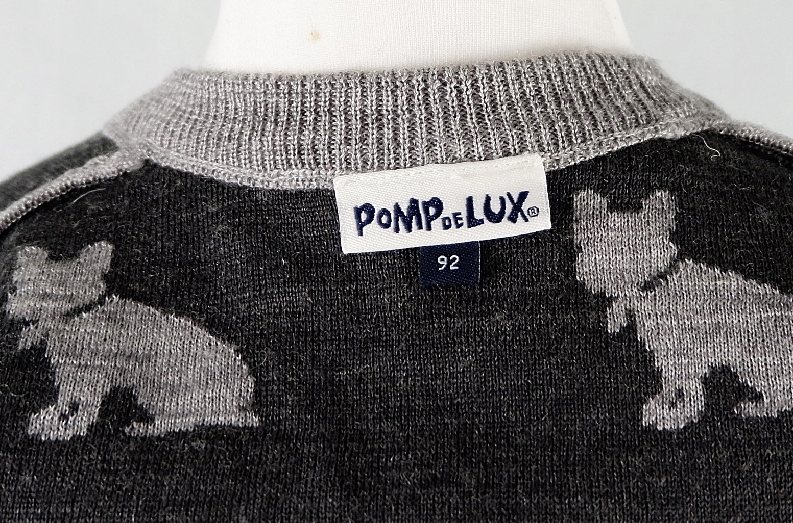 Двошаровий светр сіро-меланжевого кольору з темно-сірими собачками. Застібається на кнопки. Запасні кнопки на бічній наклейці. Внутрішній шар темно-сірий, собаки сірі. Пошито з двох шарів.