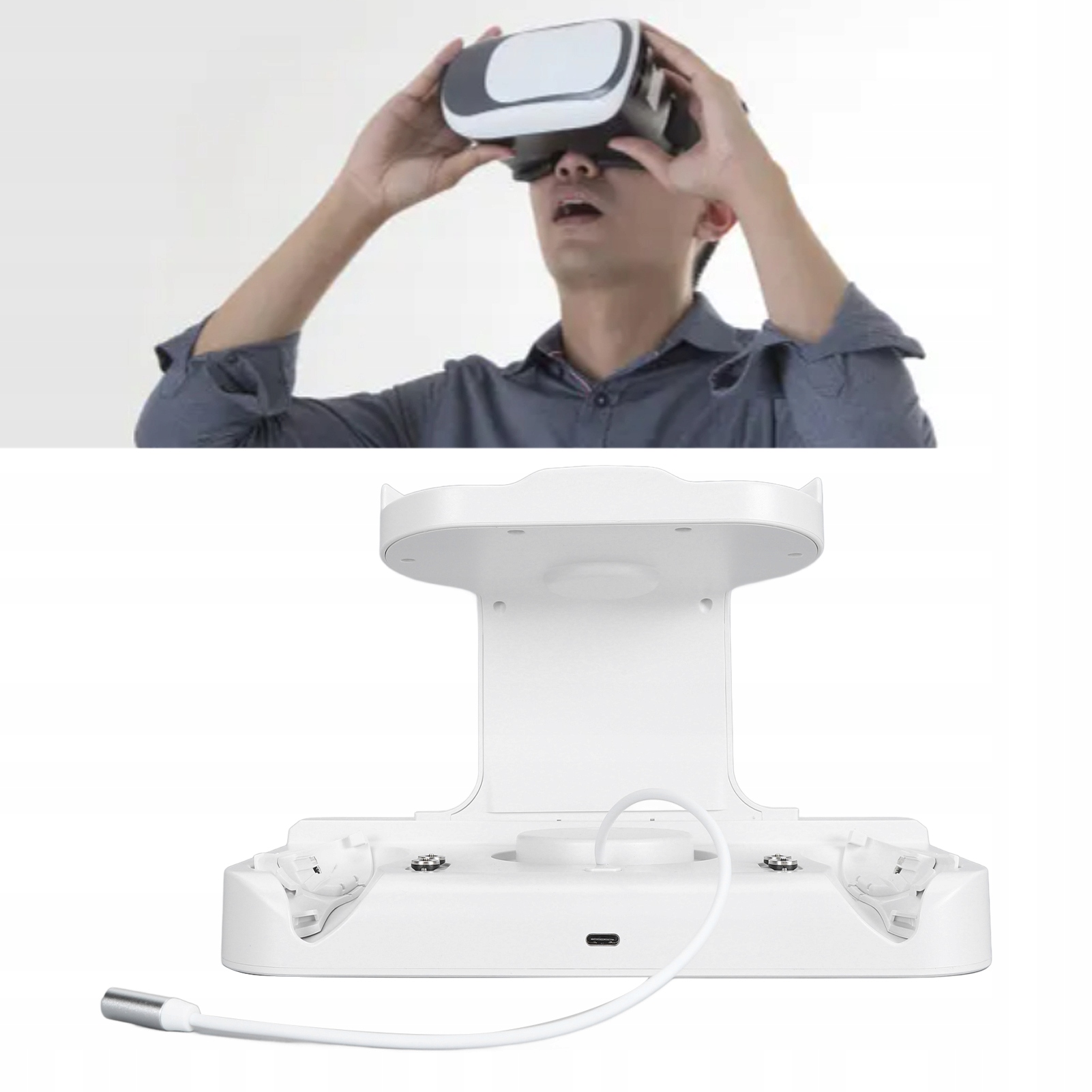 1. Одночасне зарядка: заряджайте гарнітуру та контролер одночасно. Ця зарядна підставка розроблена спеціально для Meta Quest 3. Це не лише причал для зарядки, але й підставка для гарнітури VR, щоб утримувати гарнітуру та контролери, щоб утримати місце.
