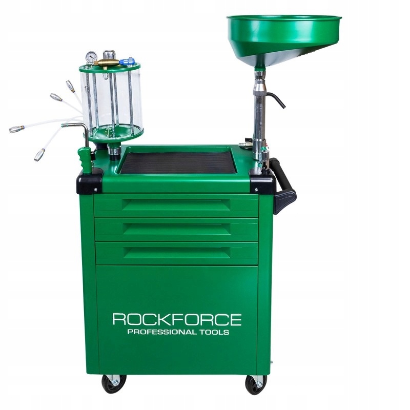 Ідеальне рішення для автомобільних майстерень, автомобільних служб і професійного використання. Він забезпечує ефективне та швидке видалення відпрацьованого масла з транспортних засобів, а також забезпечує зручність зберігання інструментів у шафі.