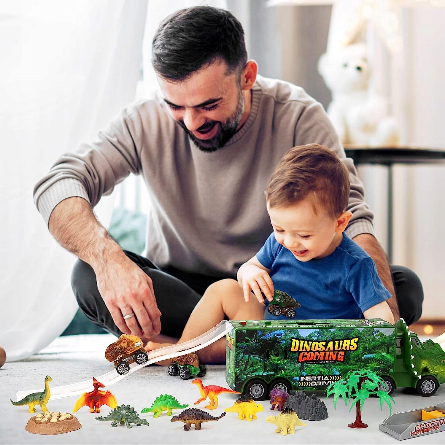 ✔ 【Портативні та багатофункціональні】 іграшки динозаврів виготовлені з міцного пластику та м'яких, куточок динозаврів, щоб насолодитися дітьми. Ви можете приховати 3 машини з динозаврами у вантажівці і взяти з собою всюди.