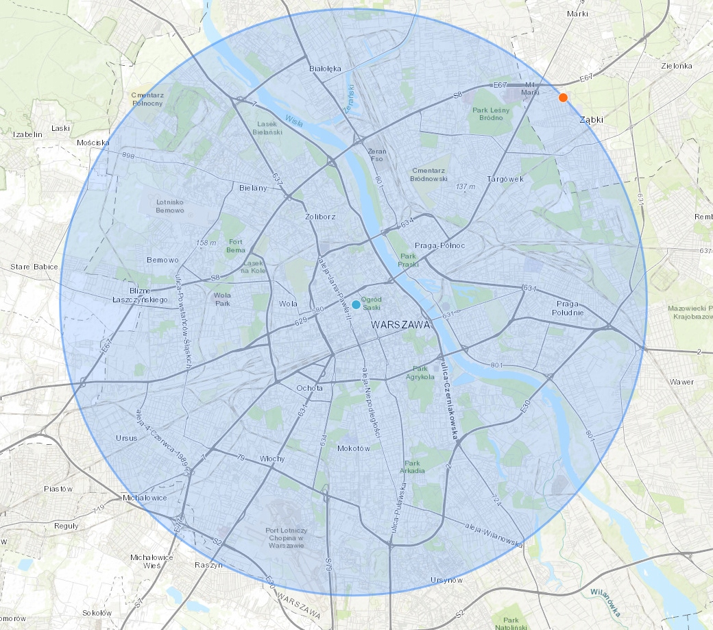 - послуга надається в районі, позначеному на карті - це ділянка діаметром 10 км, рахуючи від вул. Електоральна 9,