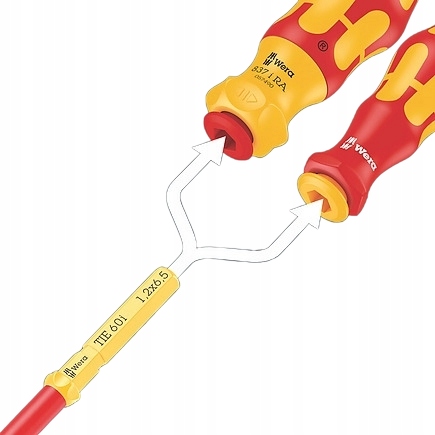 Обидві ручки мають 9 мм шестикутника для замінних оправок wera kraftform compact vde. Система ручки та замінної оправки дозволяє швидку заміну оправок , а отже, і для різних додатків.