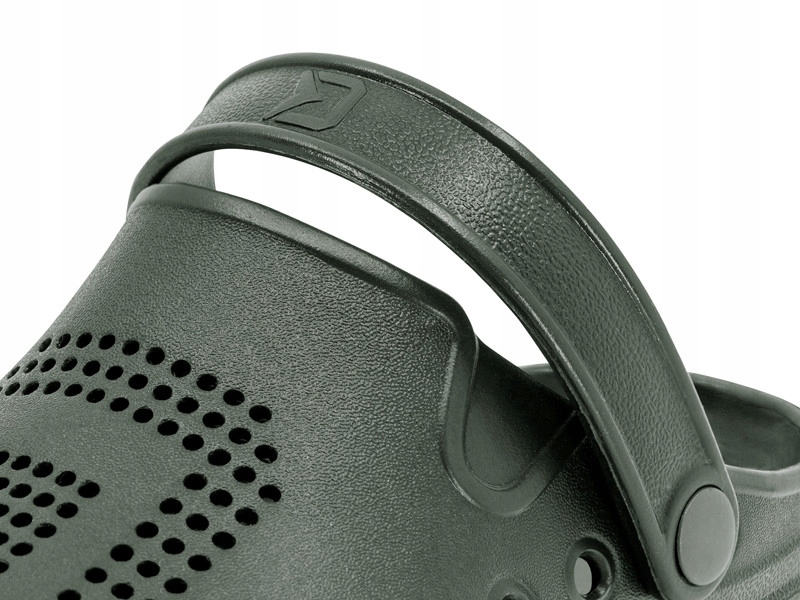 Іншим складним елементом є великі бічні отвори, роль яких полягає у забезпеченні вентиляції та загальної повітропроникності цього взуття. Вони навмисне розроблені не на низькому рівні, як це стандартно, а трохи вище. Саме ця деталь відіграє важливу роль при перебуванні на березі або на мілководді. Завдяки тому, що отвори розташовані трохи вище над устілкою, небажане накопичення піску або каміння між підошвою та стопою майже виключається. Завдяки цьому ваші ноги найкраще захищені. Крім цих отворів, вентиляцію забезпечує товста перфорація у верхній частині. З одного боку він навмисно оформлений у символ D на логотипі Delphin, а з іншого — у символ O як початкову літеру назви OCTO. Загальне враження ще більше посилюється ніжною структурою поверхні підошви, яка нагадує шкіру кальмара. Завдяки використаному матеріалу EVA вони надзвичайно легкі, міцні та навіть плавають на воді. Звісно, ця модель має петлю для фіксації п’яти (у народі її називають застібкою), що вам сподобається особливо на нерівній або похилій місцевості.