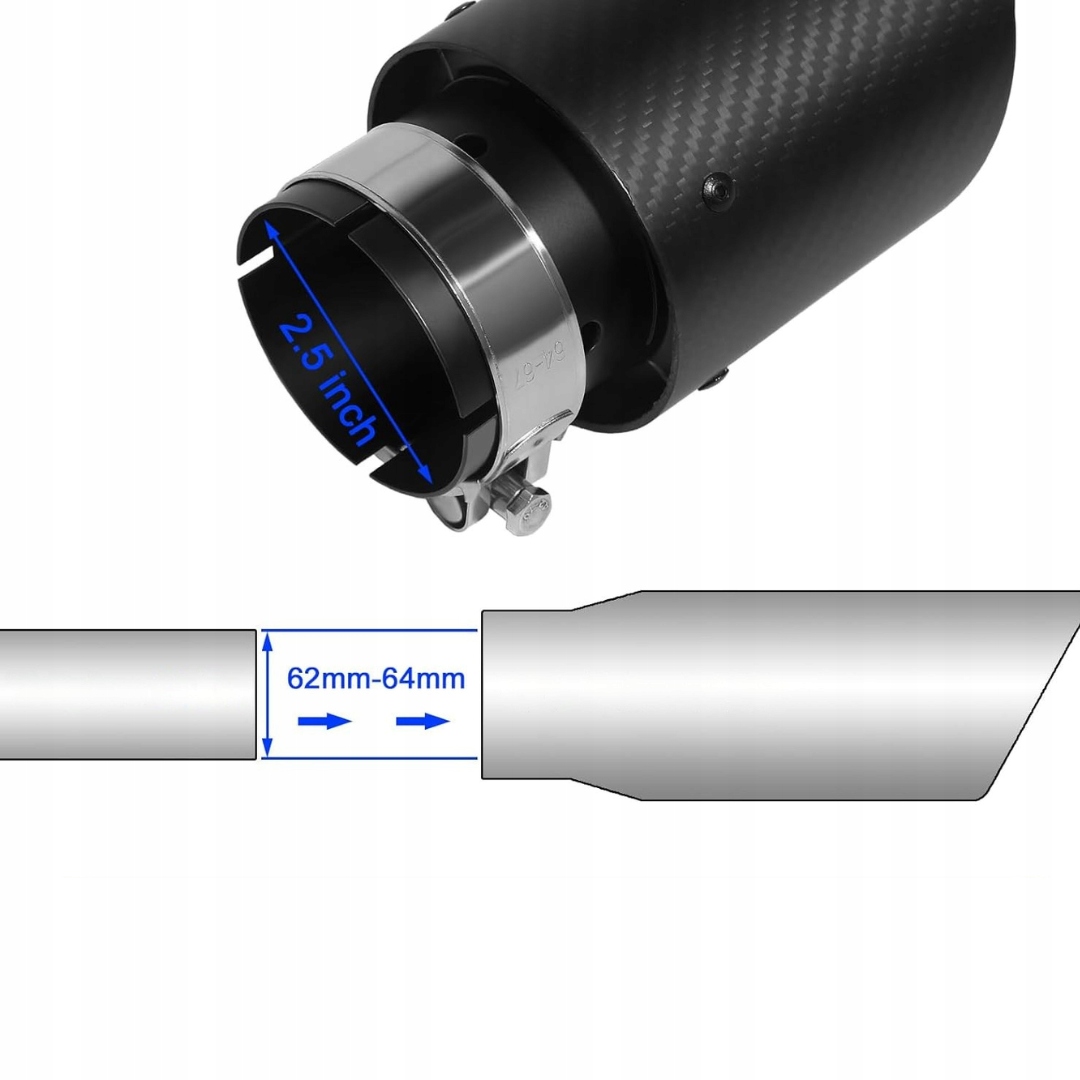 - Розміри : Зовнішній діаметр входу - 66 мм, а внутрішні 63 мм. Рекомендується вимірювати діаметр вихлопної труби транспортного засобу перед складанням - її зовнішній діаметр не повинен перевищувати 63 мм. інакше елемент може не відповідати.