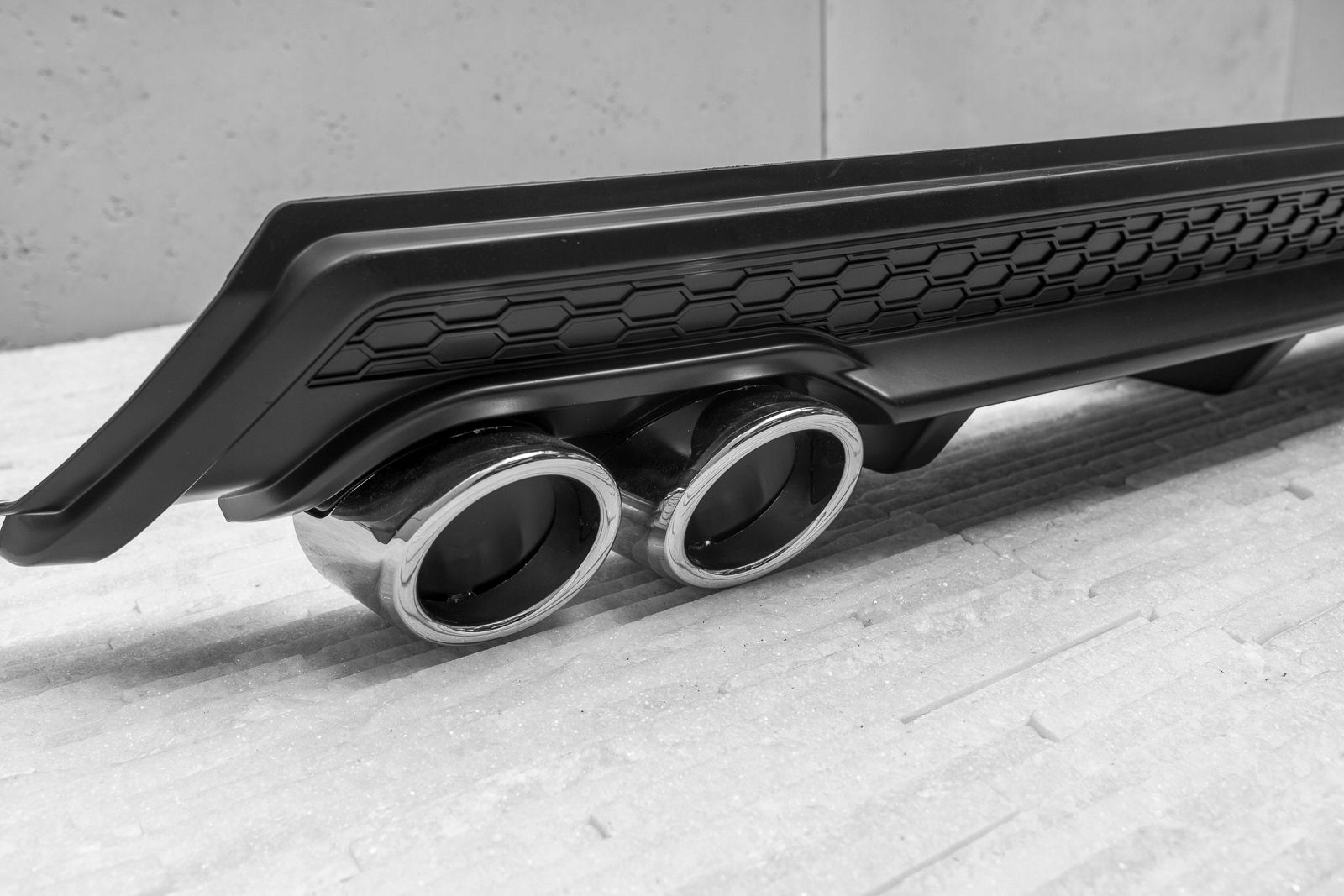 Дифузор був розроблений, щоб ідеально поєднуватися з іншими елементами обробки, доповнюючи динамічний і спортивний характер вашого автомобіля. Окрім візуальних переваг, дифузор покращує аеродинаміку автомобіля та зменшує шум повітря, що протікає під автомобілем.