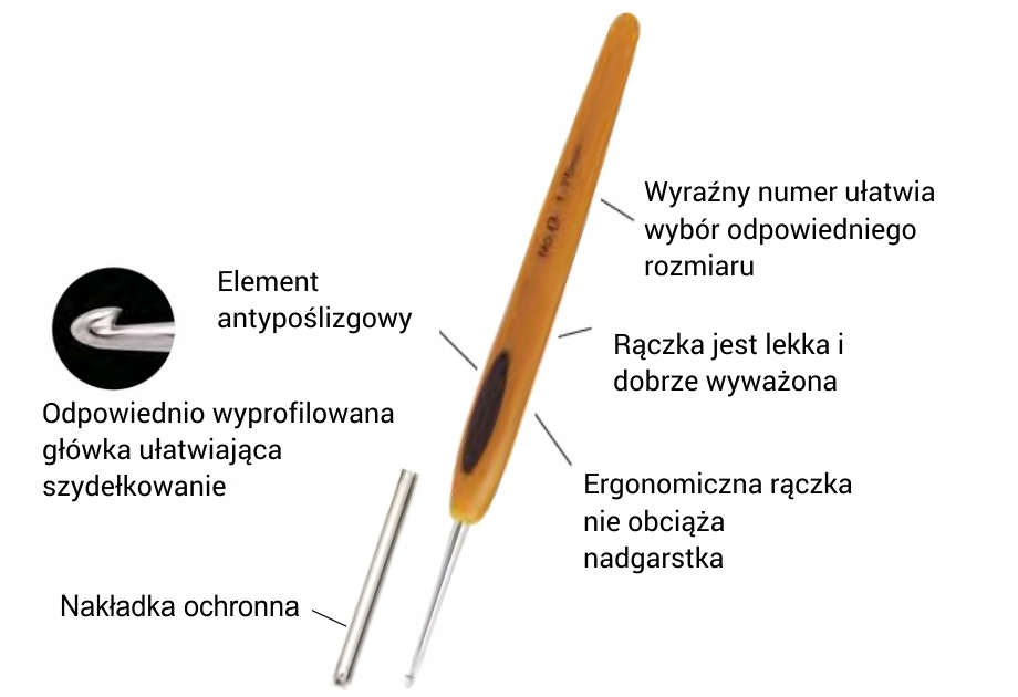 Ручка має таку форму, що рука не втомлюється під час в'язання гачком.