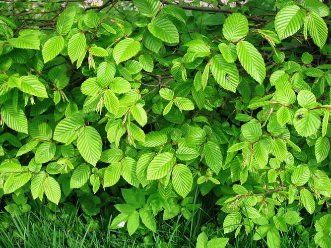 >Листки -темно-зелені, овальні, гострозагострені, подвійно зазубрені, листова пластинка зібрана гармошкою. Восени листя жовтіє.