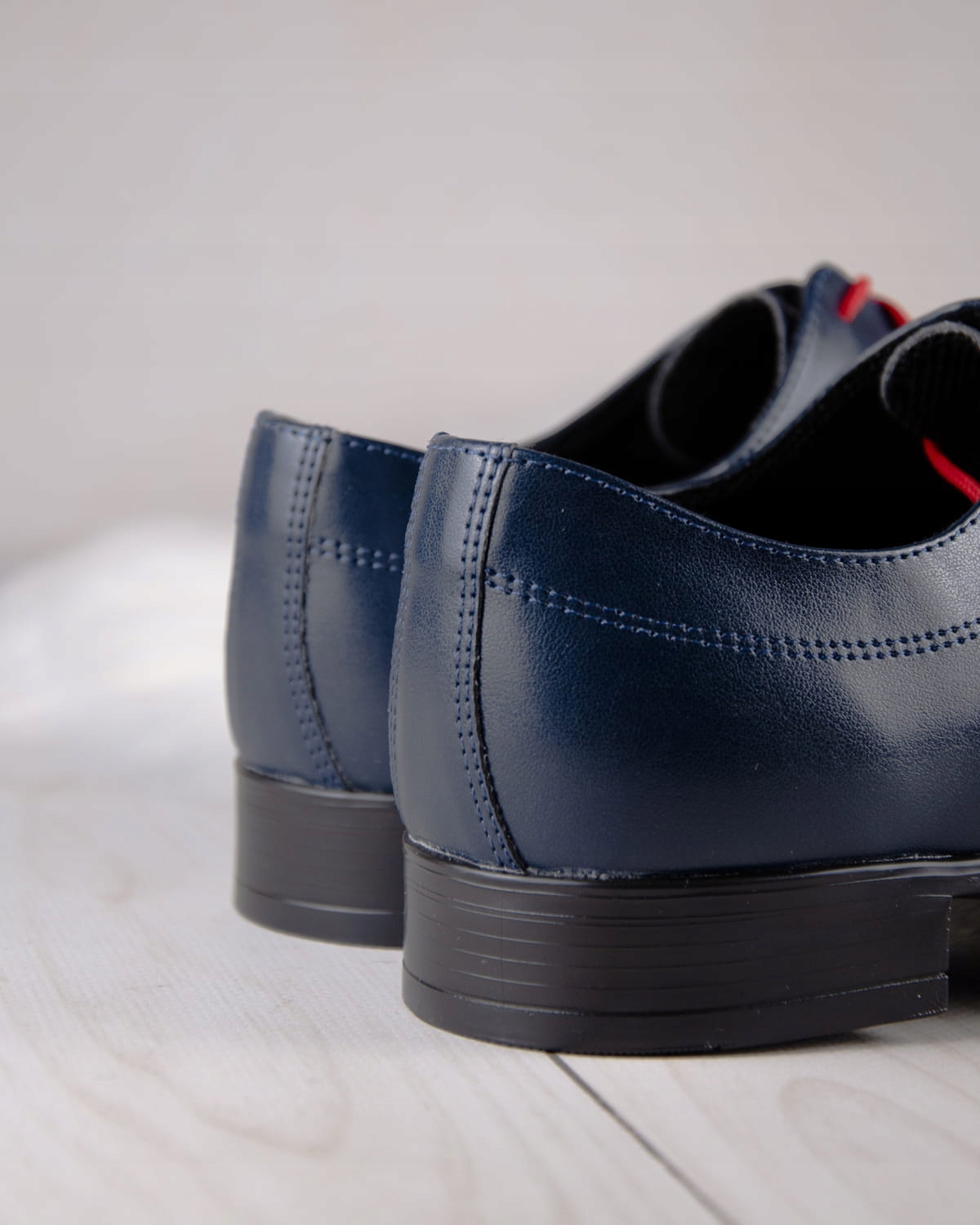 Класичне, темно -синє взуття для хлопчика. Добре -взуття, що робить їх дуже комфортними. Елегантна модель, яка зачарована червоними шнурками. Також включено до набору у темно -синій. Зовні взуття, виготовлене з екологічної шкіри м'якого зерна, в той час як вставка натуральної шкіри.