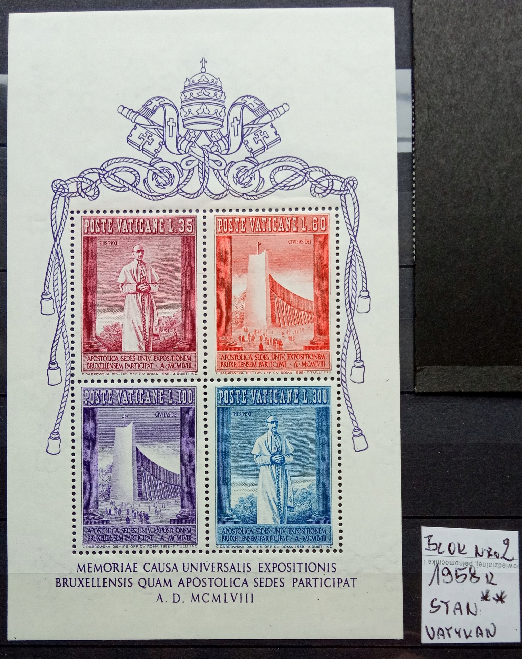 WATYKAN -1958R - MI: BLOK NR. 2 - WYSTAWA W BRUKSELI