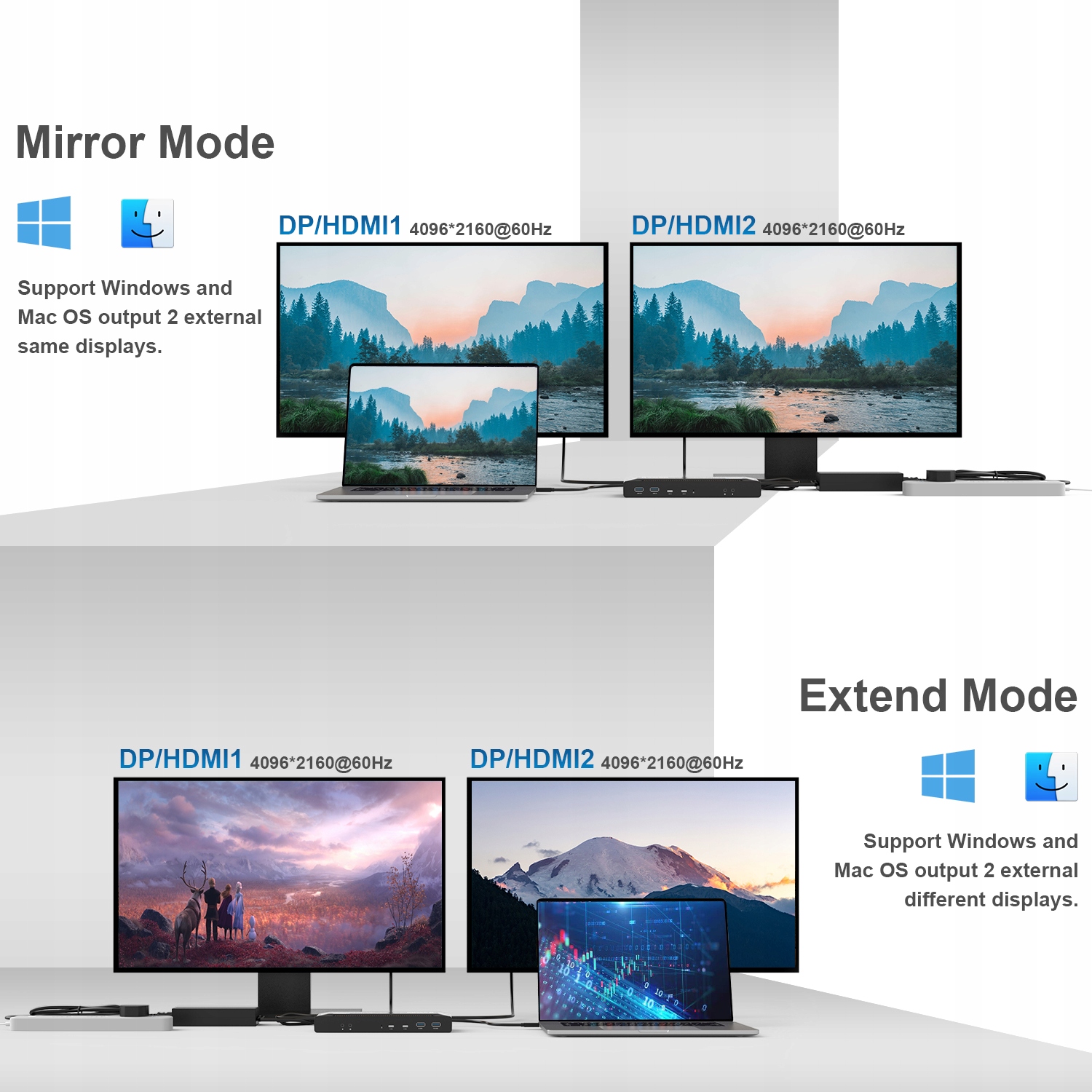 Цей пристрій підтримує як конфігурації подвійного, так і одного дисплея, з роздільною здатністю до 4K або 5K (5120x1440) при 60 Гц. Підходить для легкого офісу та загального використання, але може не підходити для підтримки завдань, що вимагають великого зображення.