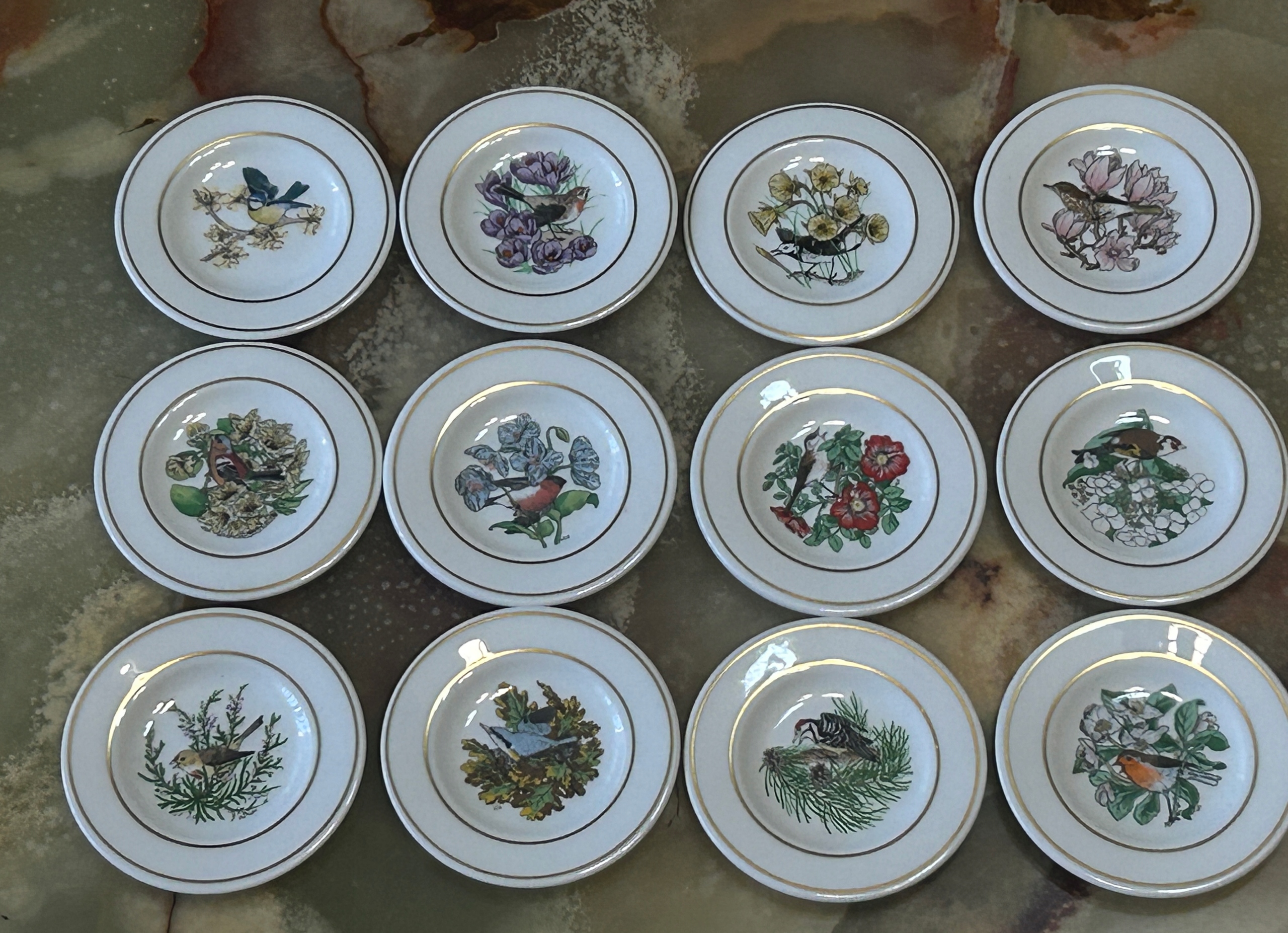 WEDGWOOD WINDSOR GREAT PARK PTAKI KWIATY NA KAŻDY MIESIĄC KOLEKCJA 12 SZT