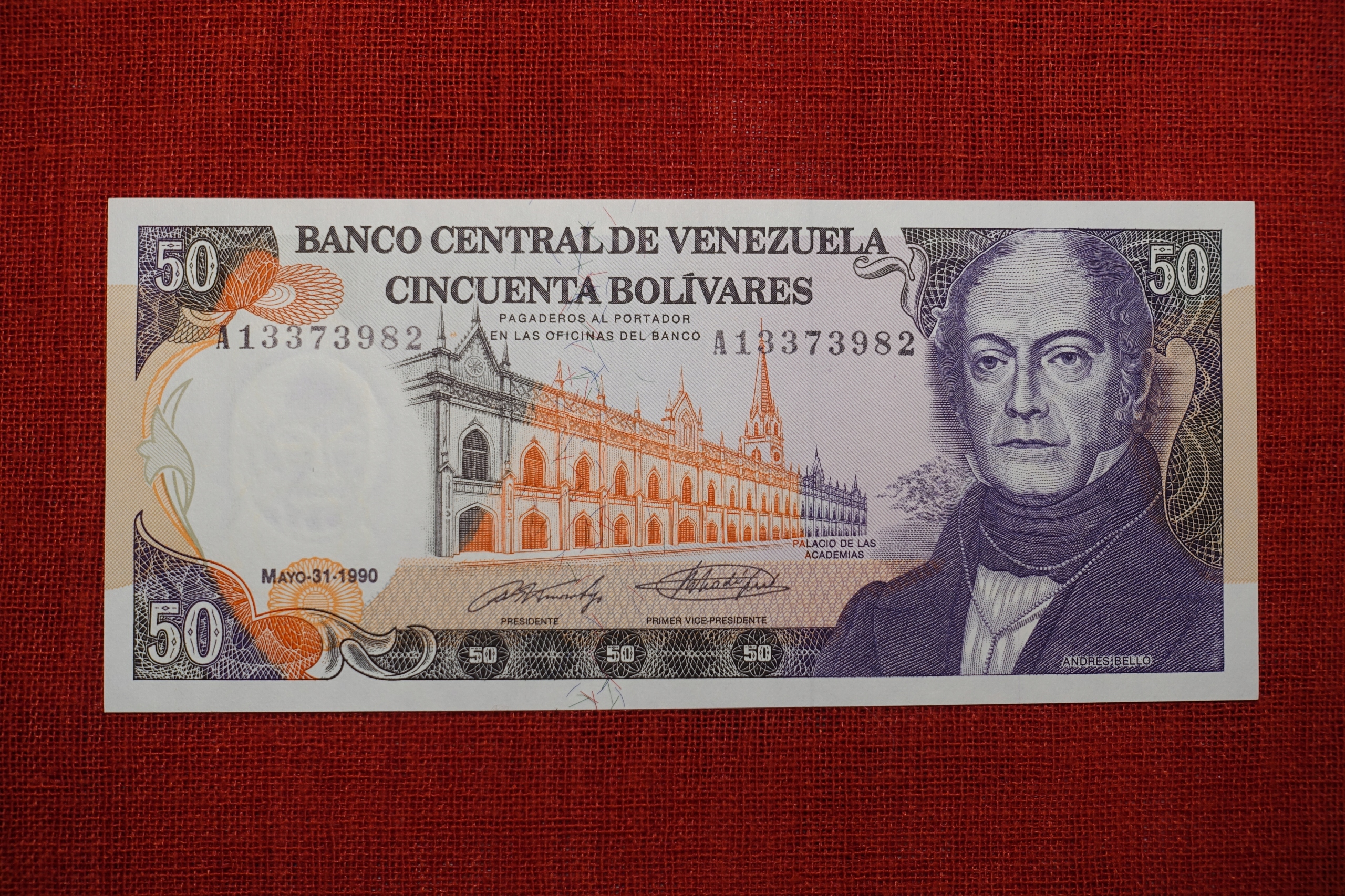 WENEZUELA 50 BOLIVARES 1990 P-72 UNC BARDZO RZADKI