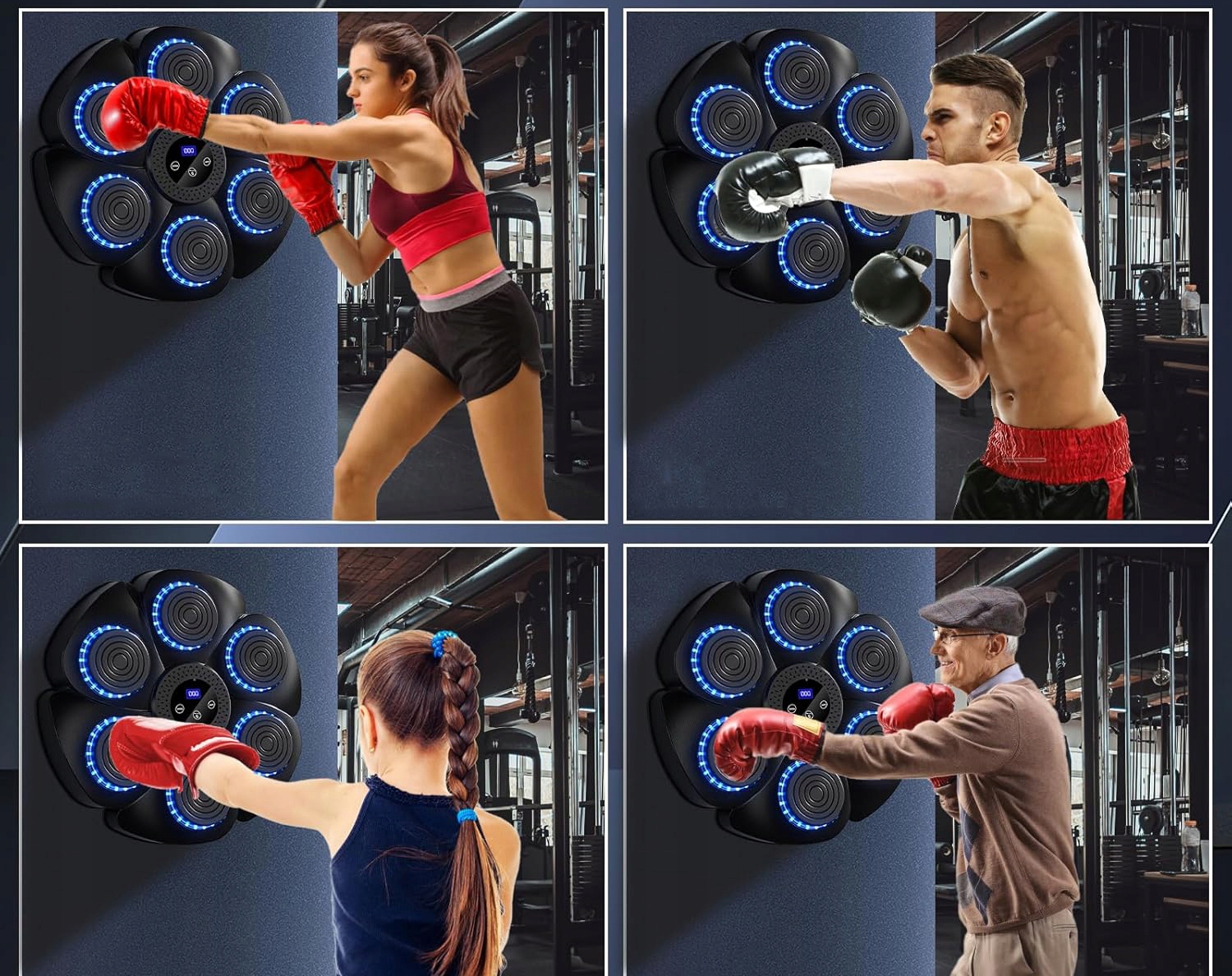 Багатофункціональне обладнання для боксу музики: ідеально підходить для людей, які хочуть зняти стрес та бокс поїздів вдома. Це найкращий вибір для офісів, працівників та студентів для зменшення напруги. Електронна боксерська машина - це також супутник фітнесу, яким можна використовувати з родиною та друзями вдома. Крім того, ви можете організувати поєдинки боксу з друзями для додаткових розваг.