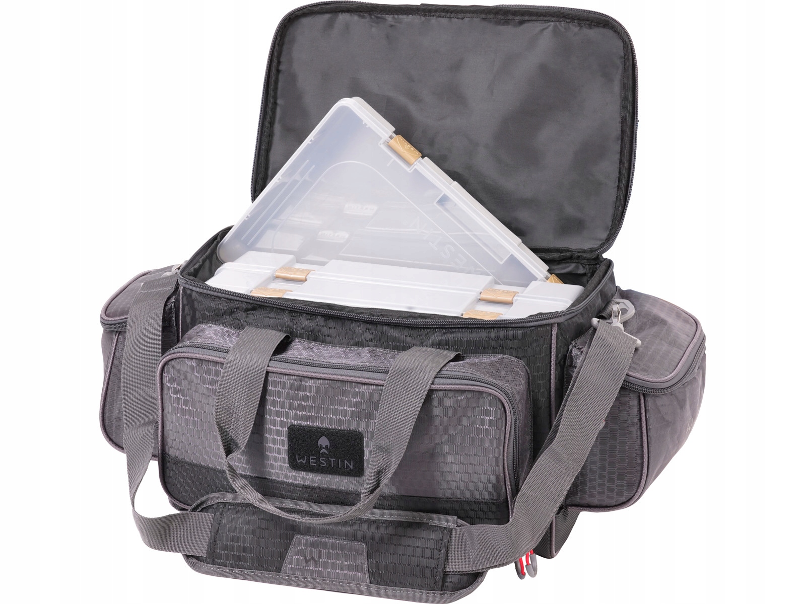 W4 Lure Lue Lure оснащений коробками для снастів Westin, великими кишенями та сильними замками. Це ідеальний мішок для зберігання приманок та аксесуарів для риболовлі. Передня кишеня має внутрішню сітчасту кишеню, а бічний кишеньковий гнучкий організатор інструментів, який зберігає плоскогубці та інструменти в потрібному місці.