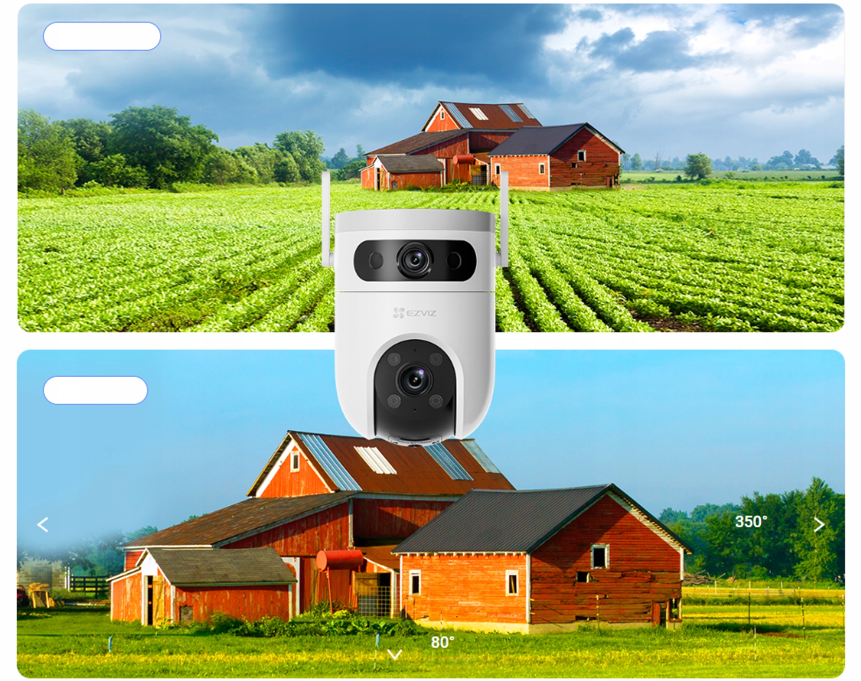Ексклюзивна технологія з двома лінзами робить H9C 3K Ezviz забезпечувати неперевершений захист, що виходить за рамки професіоналізму. Він використовує ширококутний об'єктив над каструлею та нахилом телефото-об'єктива-дует працює незалежно або разом таким чином, що набагато розумніший, ніж звичайна камера.