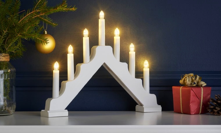 ŚWIECZNIK ADWENTOWY ŚWIĄTECZNY DREWNIANY 7x LED 37x30 cm WHITE