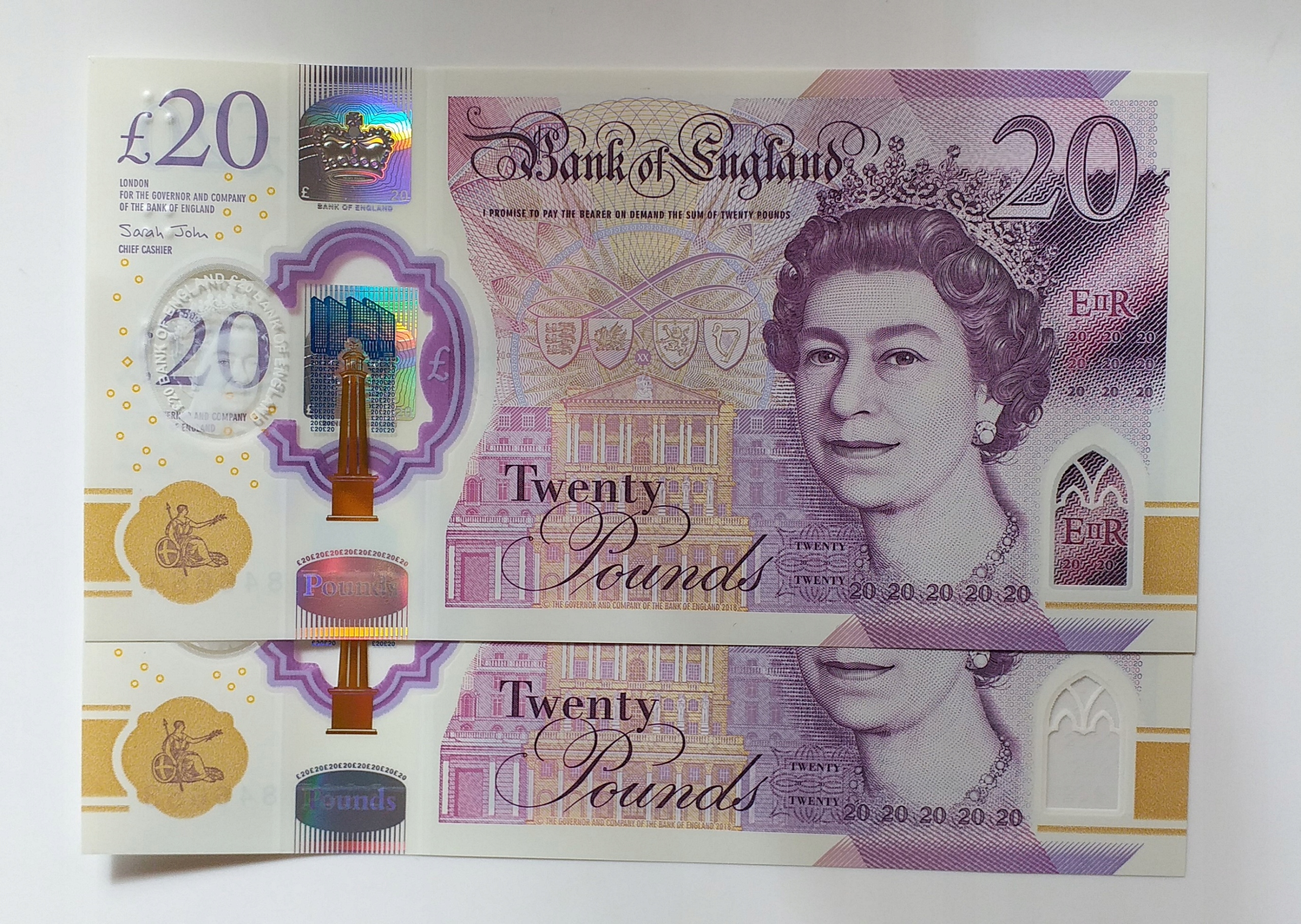 Wielka Brytania 20 Funtow 2018 Krolowa Elzbieta II - Nowe 2 banknoty