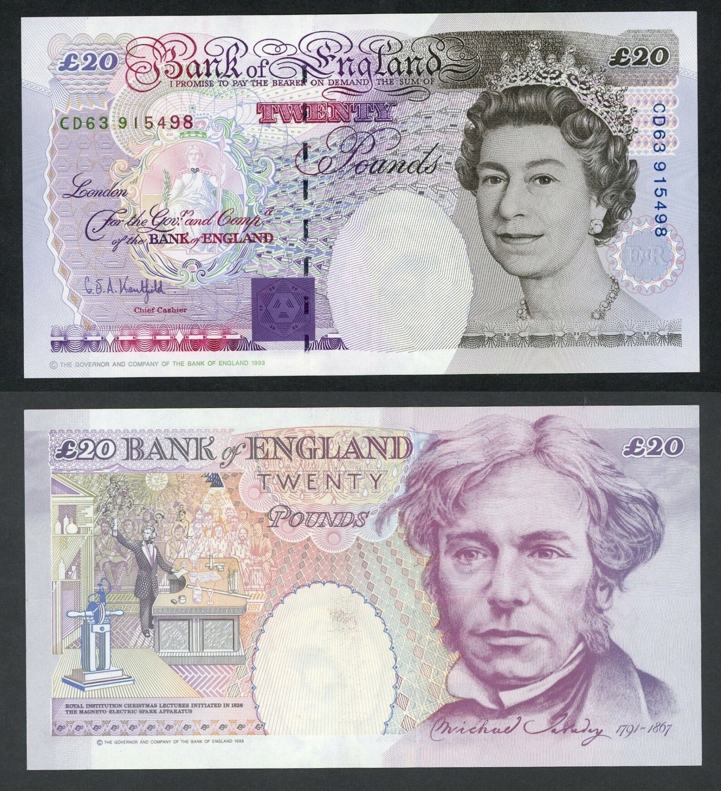 WIELKA BRYTANIA 20 Pounds funtów 1993 P-387a podpis: G. E. A. Kentfield UNC