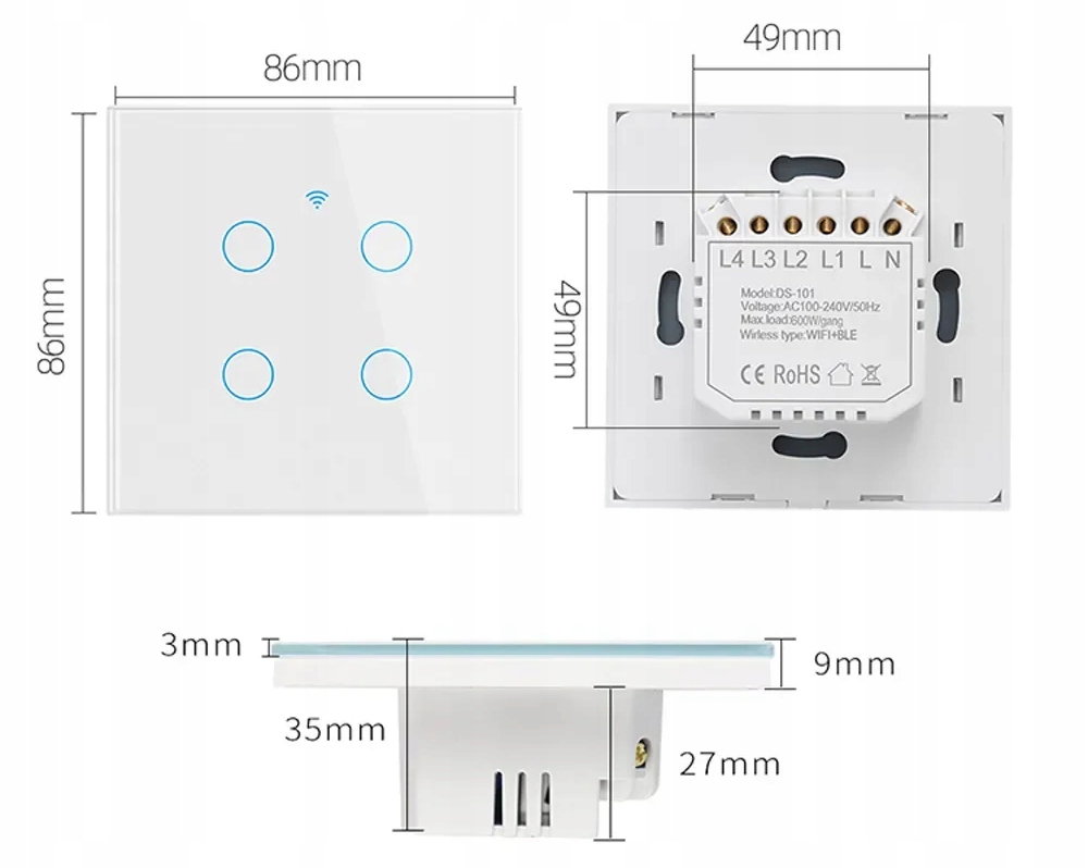 - Розміри: 86 x 86 x 35 мм