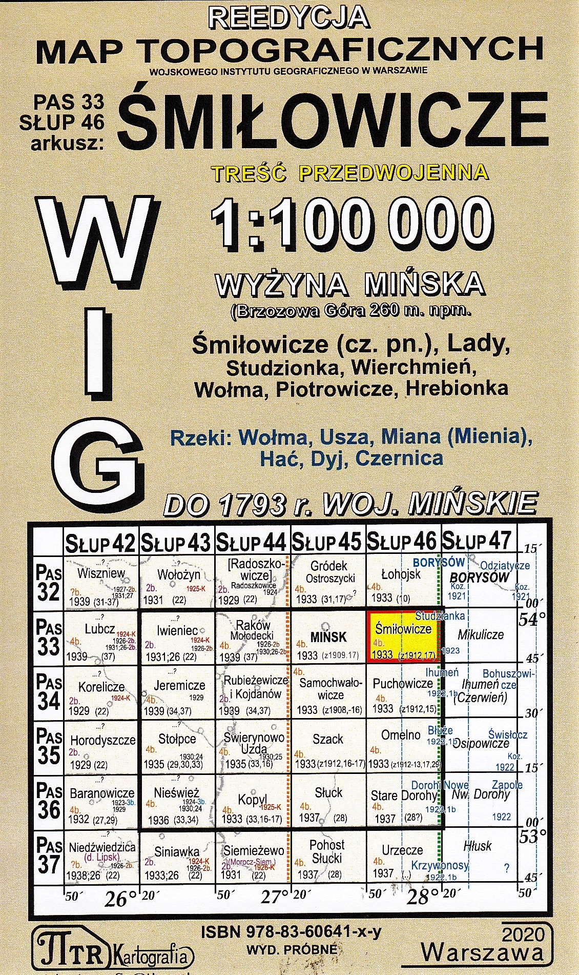 WIG 33/46 Śmiłowicze (plansza) reedycja z 1933 r. PTR Kartografia