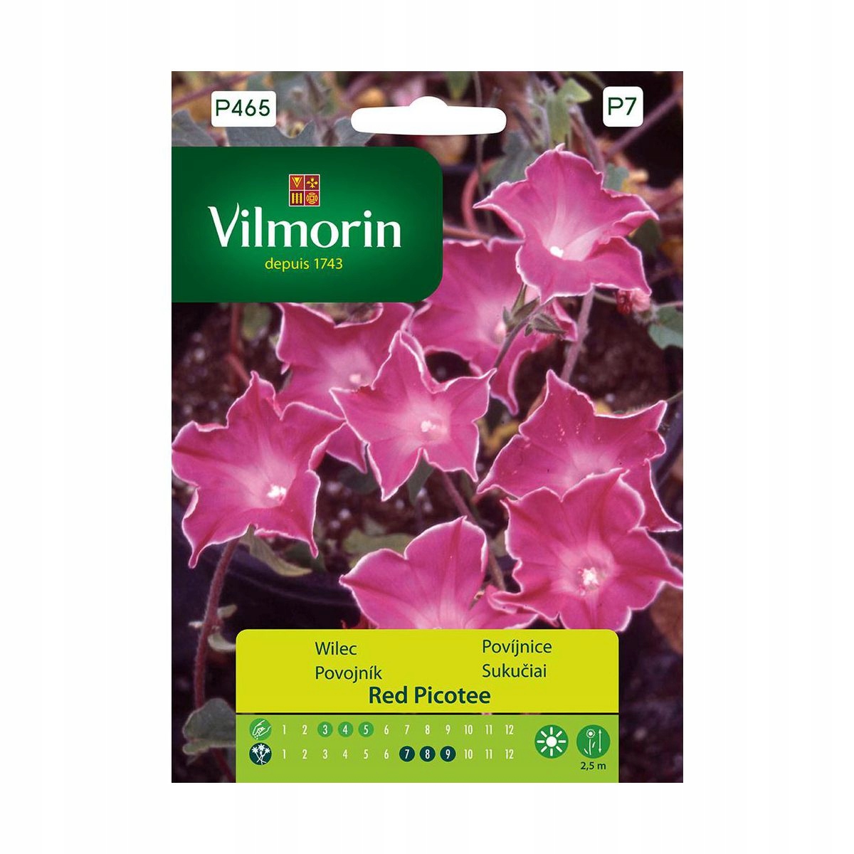 однорічна рослина. Виростає до 2,5 м. Чашеподібні квіти красивого рожевого кольору з білим краєм. Рослина особливо рекомендована для покриття пергол, сіток, огорож, стін будівель і балконів. Сіємо насіння в березні-травні. Сонячне і злегка затінене місце. Грунт родючий, не дуже вологий.